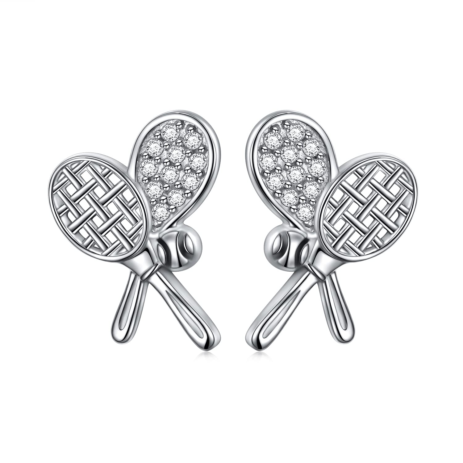 This 925 sterling silver tennis rackets and ball Cubic Zirconia stud earrings make the perfect gift for tennis players, tennis teams, tennis coaches, tennis fans, tennis lovers Material: solid .925 sterling silver tennis rackets and ball stud earrings with white gold plated ; Finish: high polish ; W