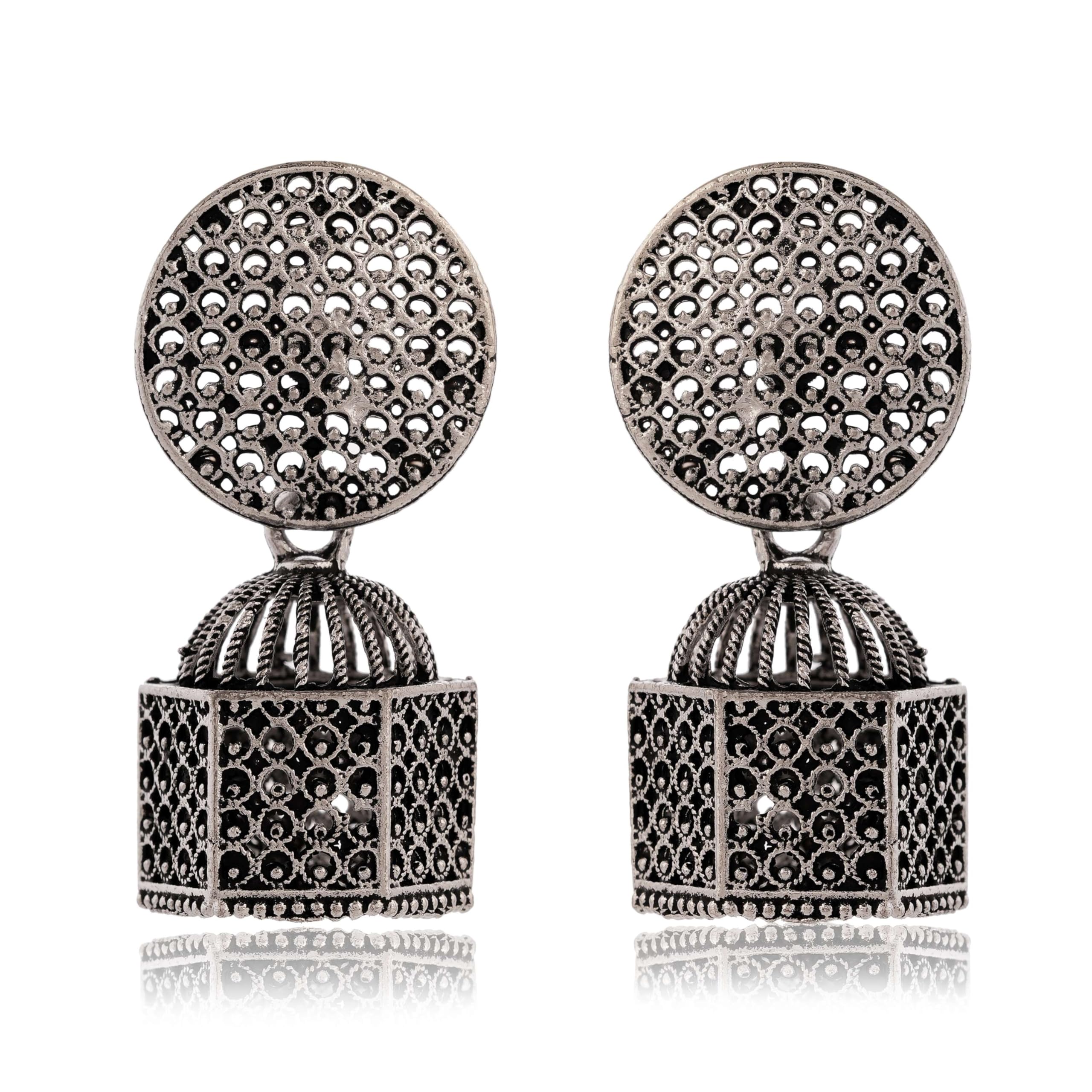 Craftveda Jhumka Earrings for Women - Handcrafted Oxidized Silver, Bollywood Chand Bali - Navratri, Vintage Bohemian Ethnic Jewelry