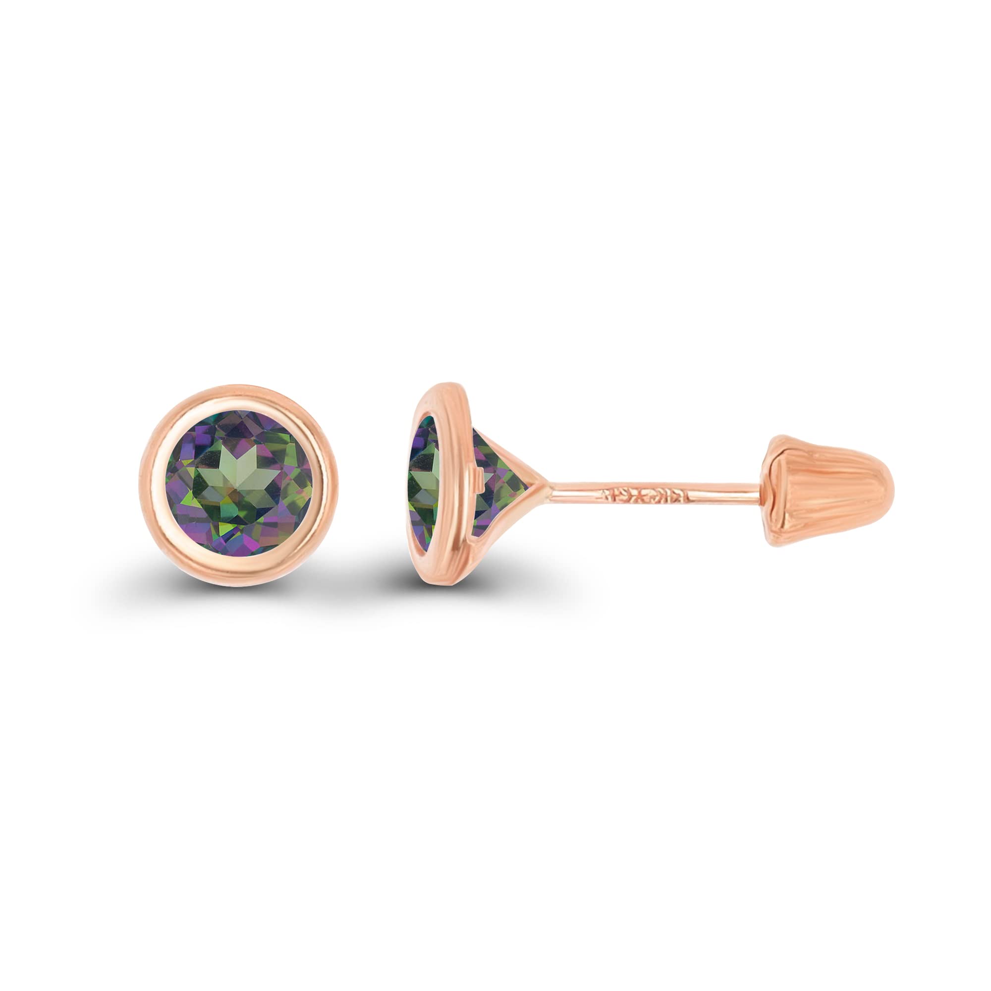 14K SOLID GOLD: This product is made of solid 14K gold and each piece is carefully trademarked with the metal purity for certification. Each piece is stamped 14K or 585 and that guarantees the quality and craft. Mystic-Quartz: This 14K Rose Gold Basic 4mm Round Mystic Green Quartz Bezel Hat Screw Ba