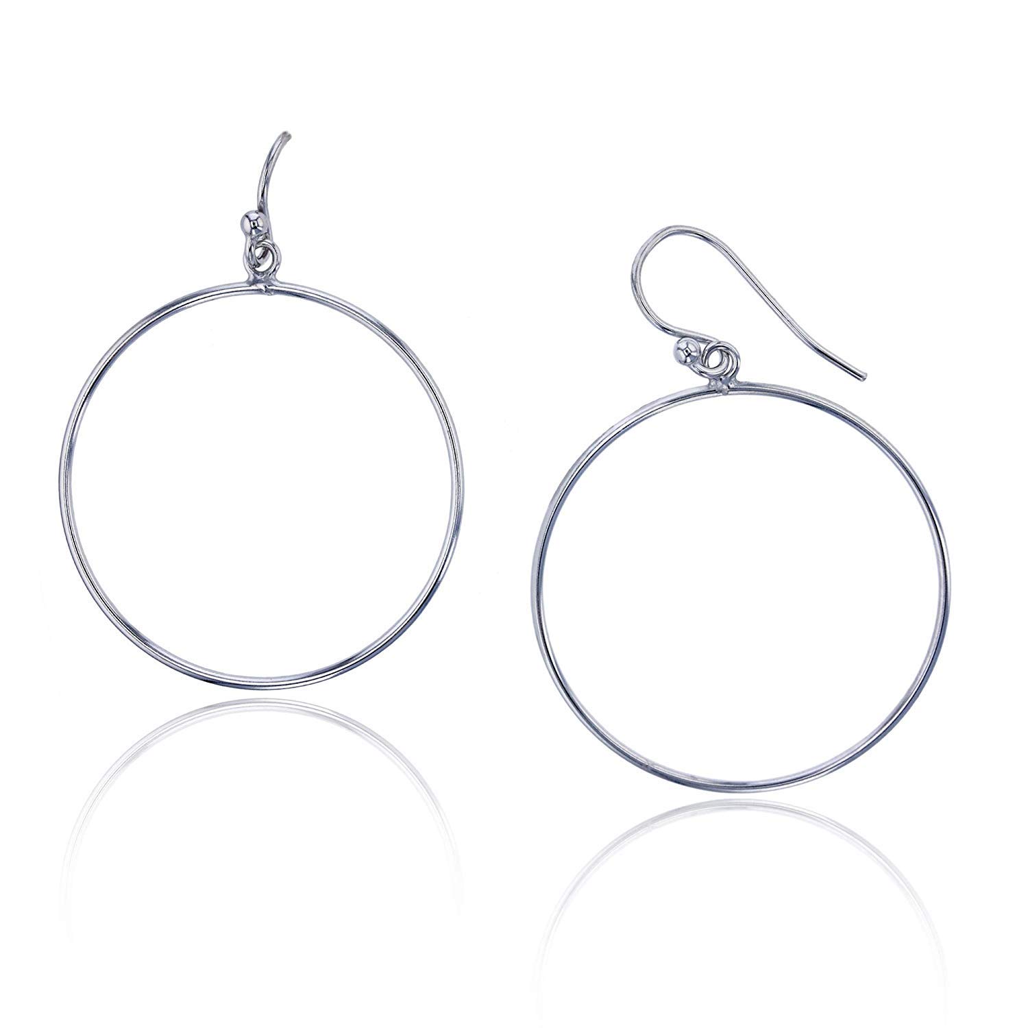 DECADENCE Sterling Silver Polished Rhodium Dangling Open Circle and Pear Hoop Earrings for Women | Fish Hook Drop Wire Earrings | Secure Bar Closure |