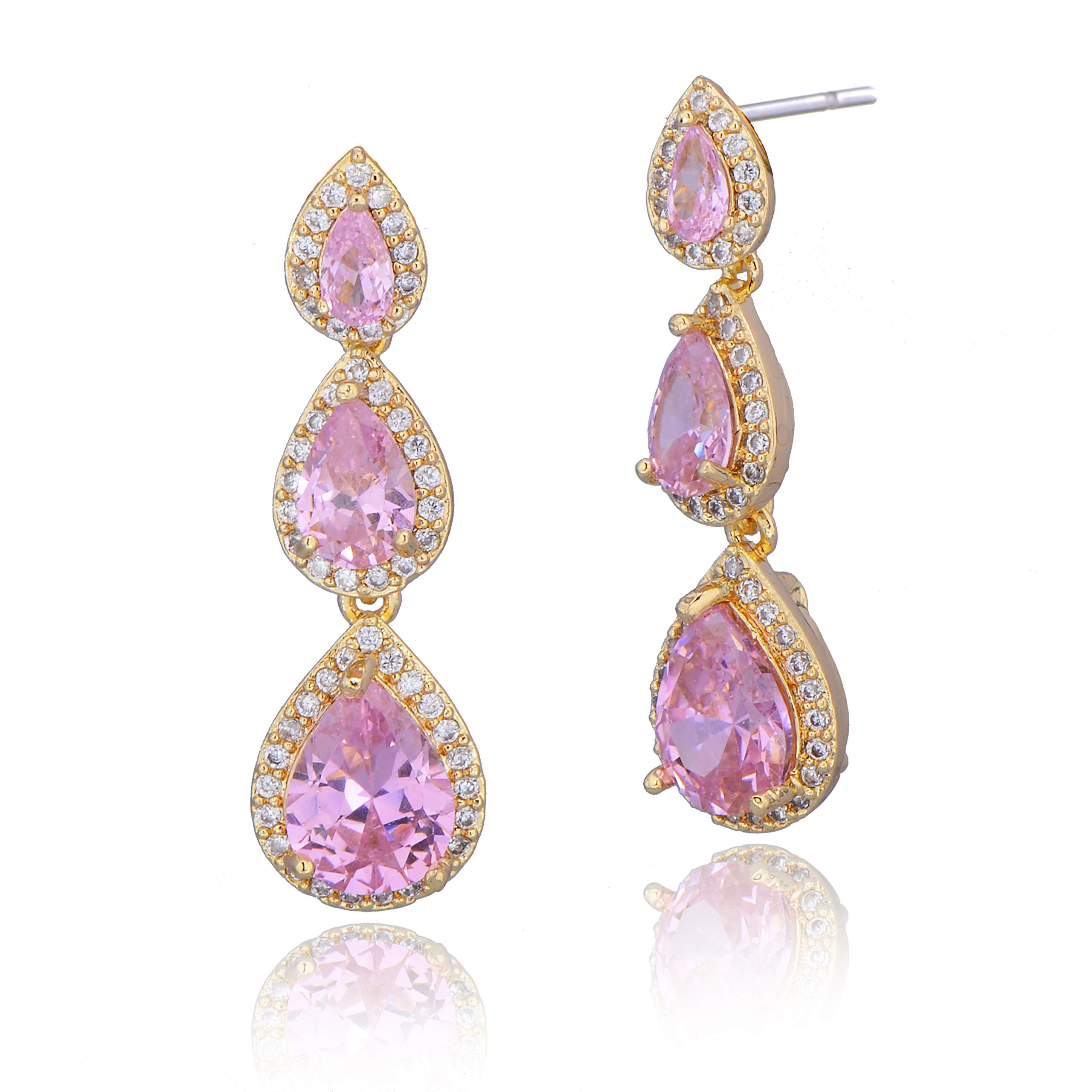UNIQUE DESIGN - Gold Pink CZ dangle drop earrings featuring 14k white gold plated with grade AAAAA Pear-shaped Cubic Zirconia crystals for a diamond-like brilliance. Crafted from high-quality copper. These long luxurious statement earrings are sure to catch everyone's eyes wherever you go! SIZE - 1.