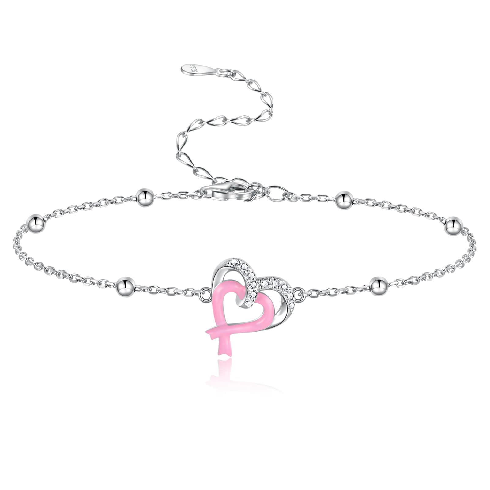 Zepmais Breast Cancer Awareness Bracelet 925 Sterling Silver Pink Ribbon Anklet Survivor Jewelry Inspirational Gifts for Women Teens