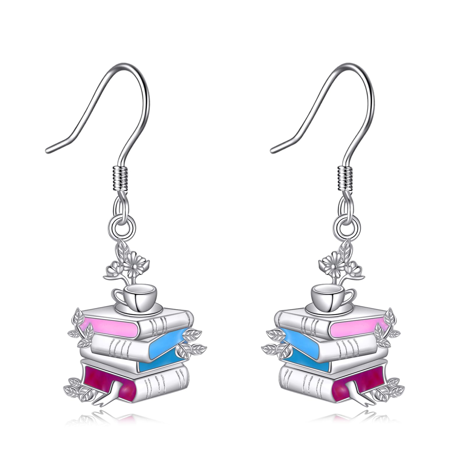 POPLYKE Book Dangle Earrings S925 Sterling Silver Books Lover drop Earrings for Women Teacher Jewelry Gift
