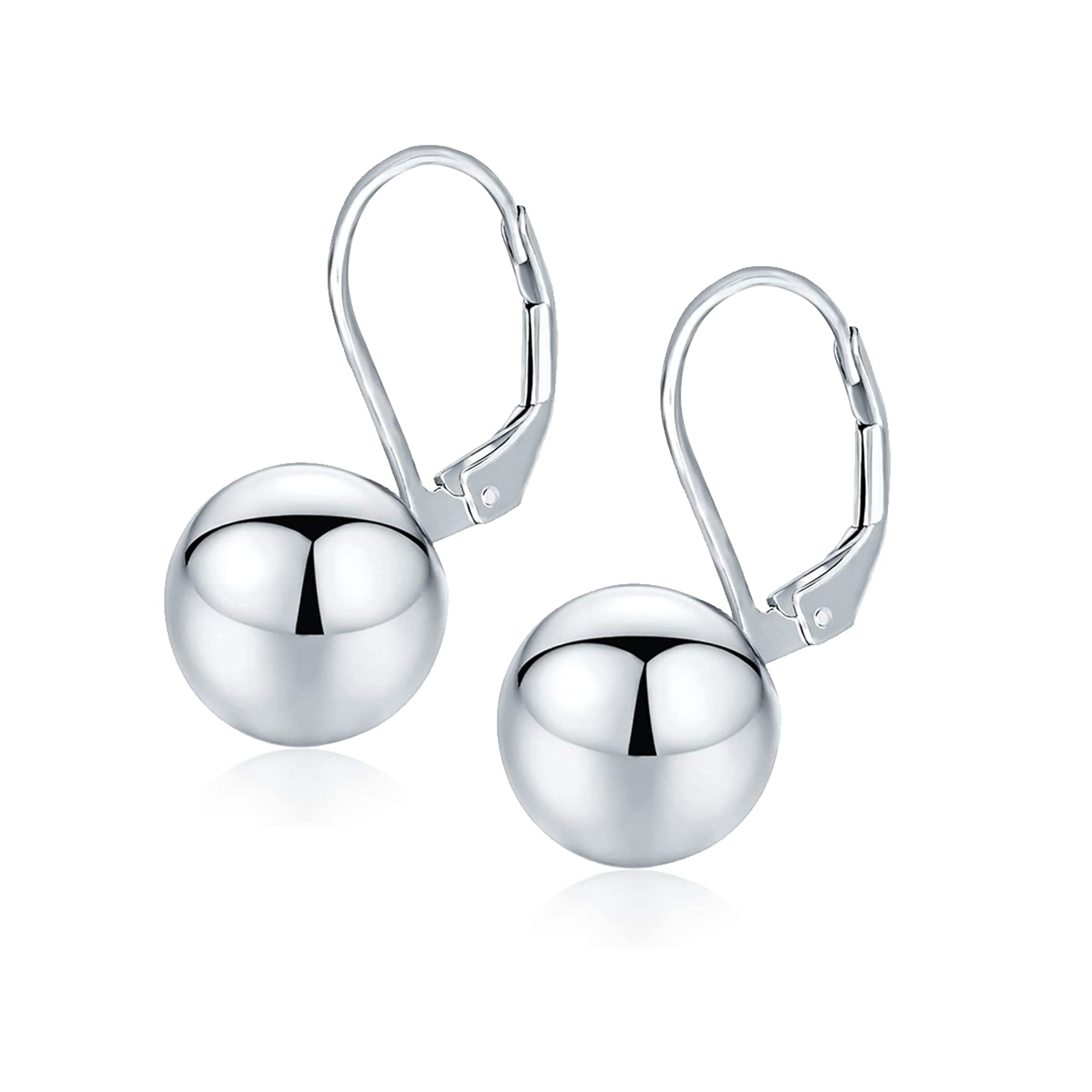 Charmsy 925 Sterling Silver Leverback Earrings for Women | Classic Bead Ball, Hammered Mirror Ball & Pearl Drop Dangle Earrings