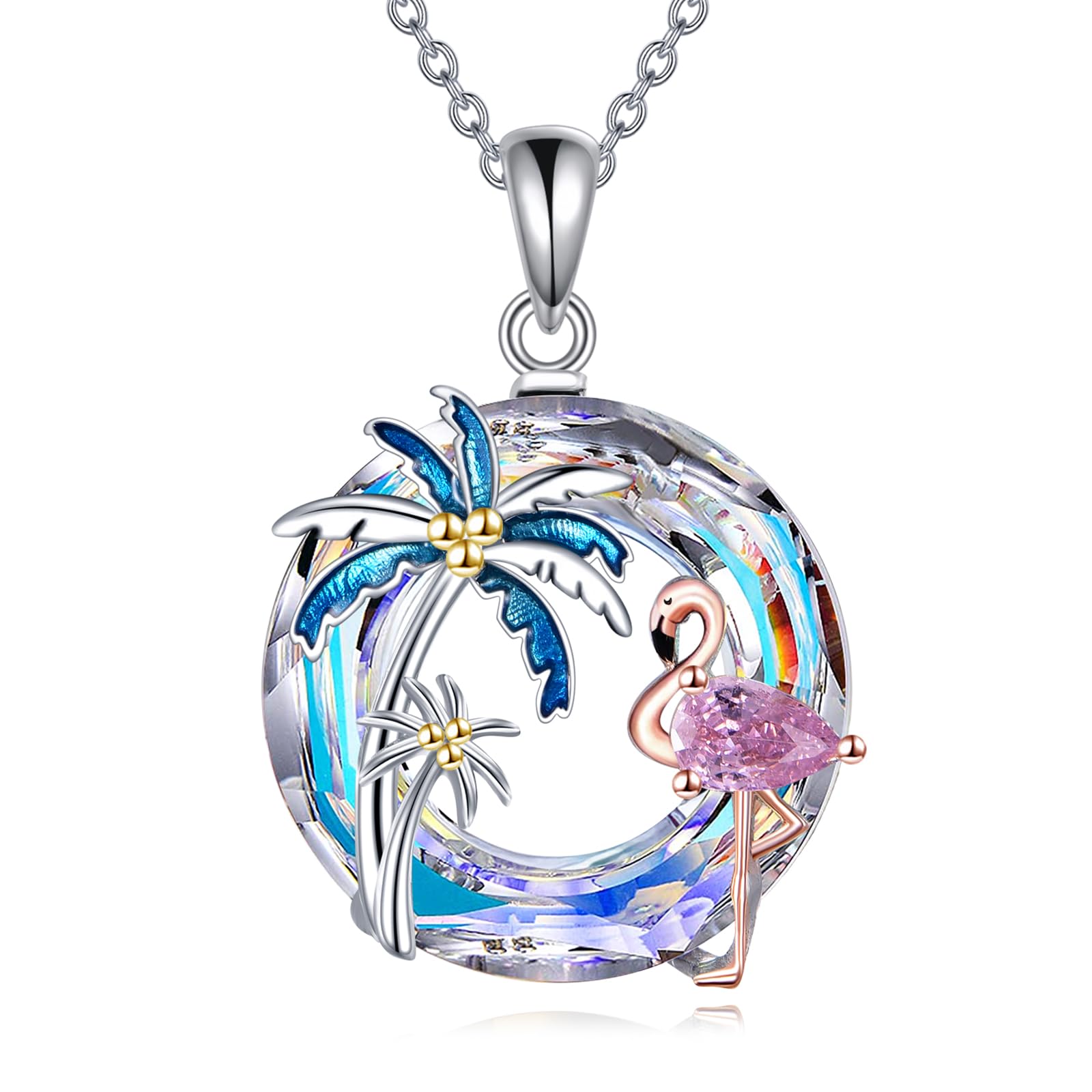 AINFQY Flamingo Necklace for Women 925 Sterling Silver Flamingo Pendant Palm Trees Necklace Crystal Jewelry Gift