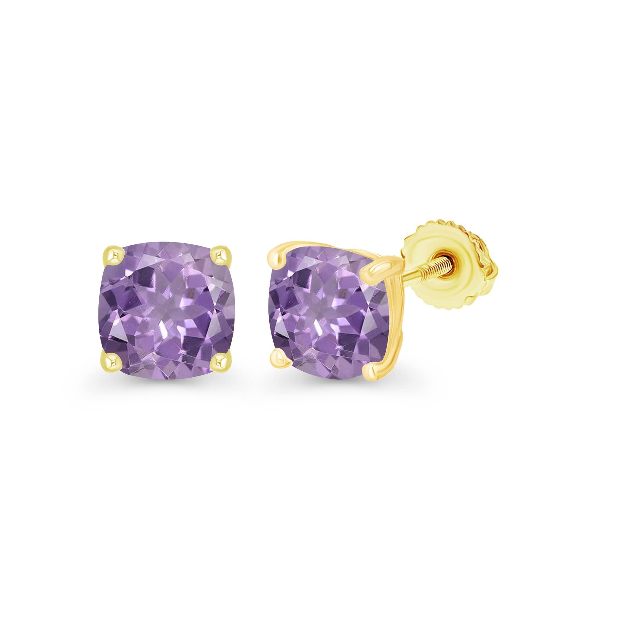 14K Gold Plated 925 Sterling Silver Hypoallergenic 6mm Cushion Cut Genuine Birthstone Solitaire Screwback Stud Earrings