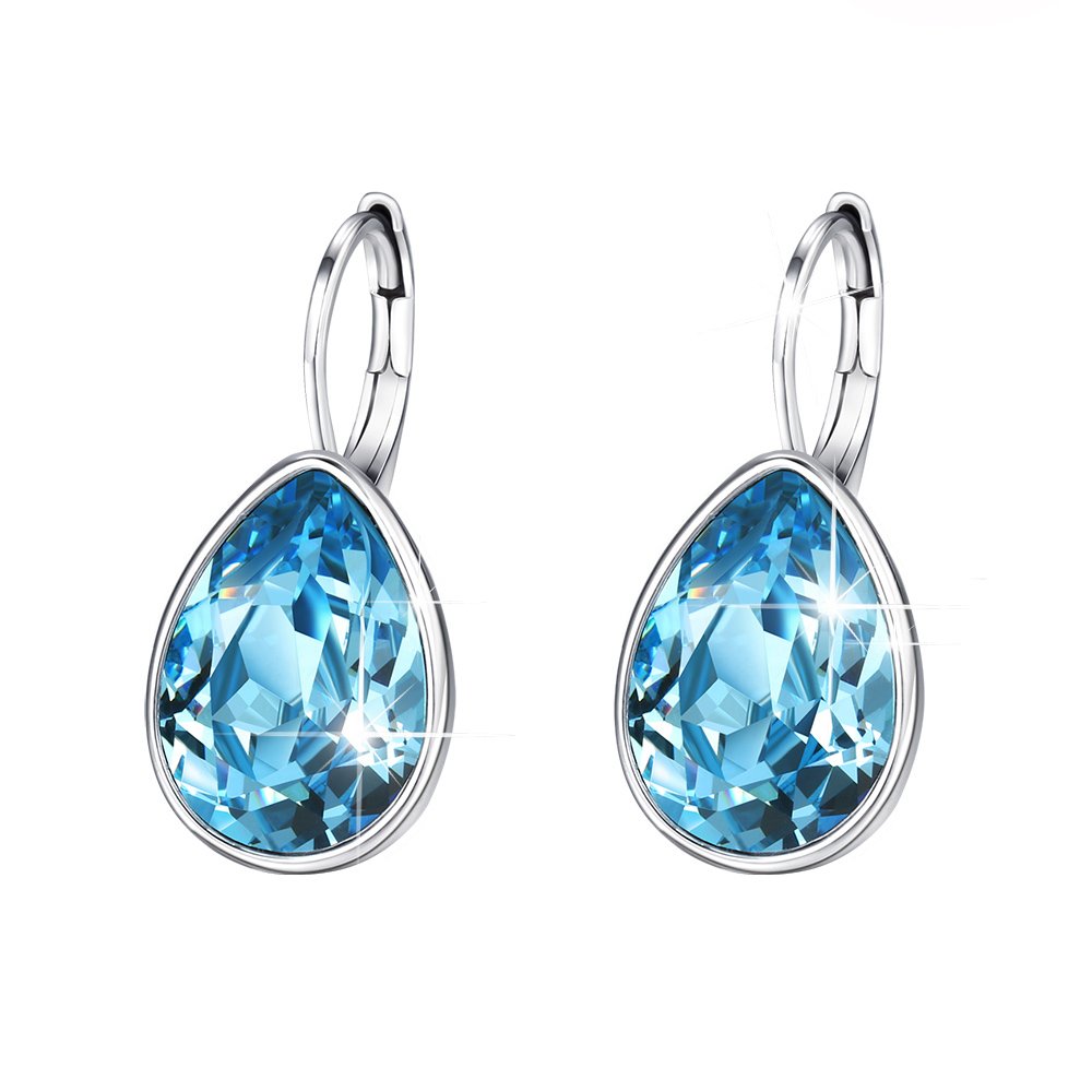 Xuping Jewelry Huggies Crystal Teardrop Earrings for Women Clear Crystals Leverback Silver Earring Fashion Party Jewelry Gifts