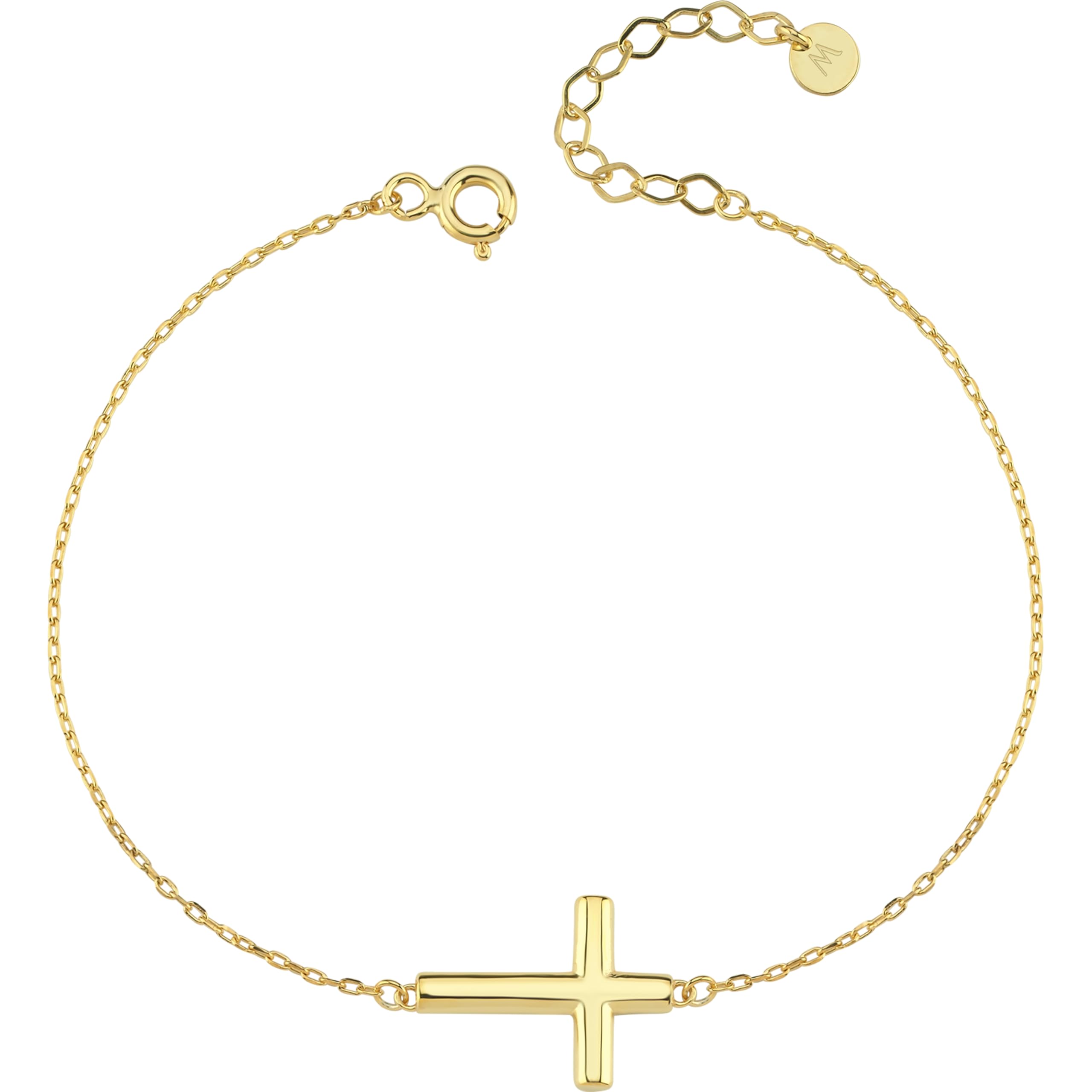 14K Solid Gold Construction: Experience true luxury with MIONZA's 14K Solid Gold Cross Bracelet, crafted exclusively from high-purity gold for a rich, lasting sheen. This premium material ensures a timeless accessory resistant to wear and tarnish, perfect for daily adornment. Elegant Sideways Cross