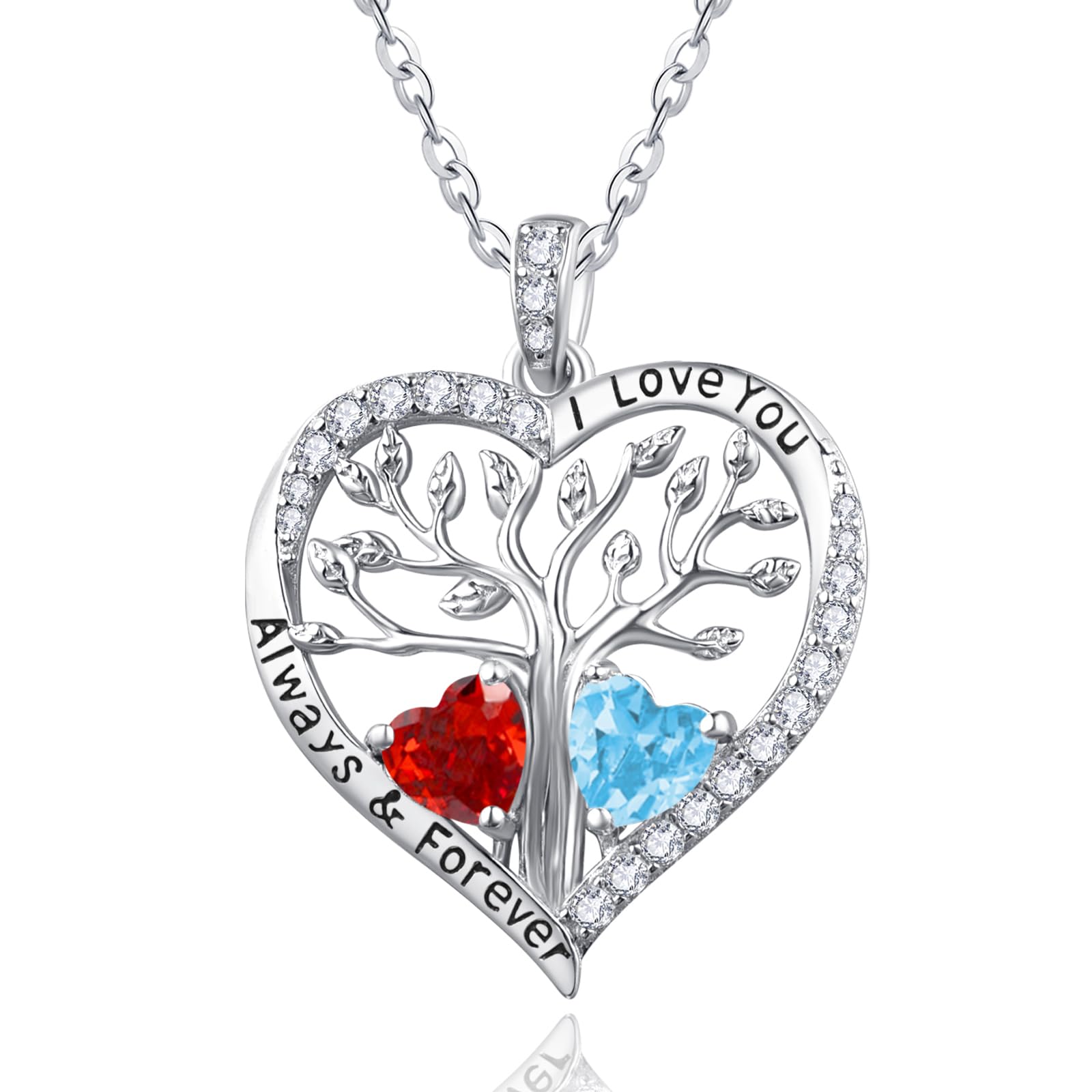 Zeuslia Birthstones Necklaces for Women, 925 Sterling Silver Heart Pendant with Sunflower/Rose/Daisy/Tree of Life/Angel Wings, Valentines Day Birthday