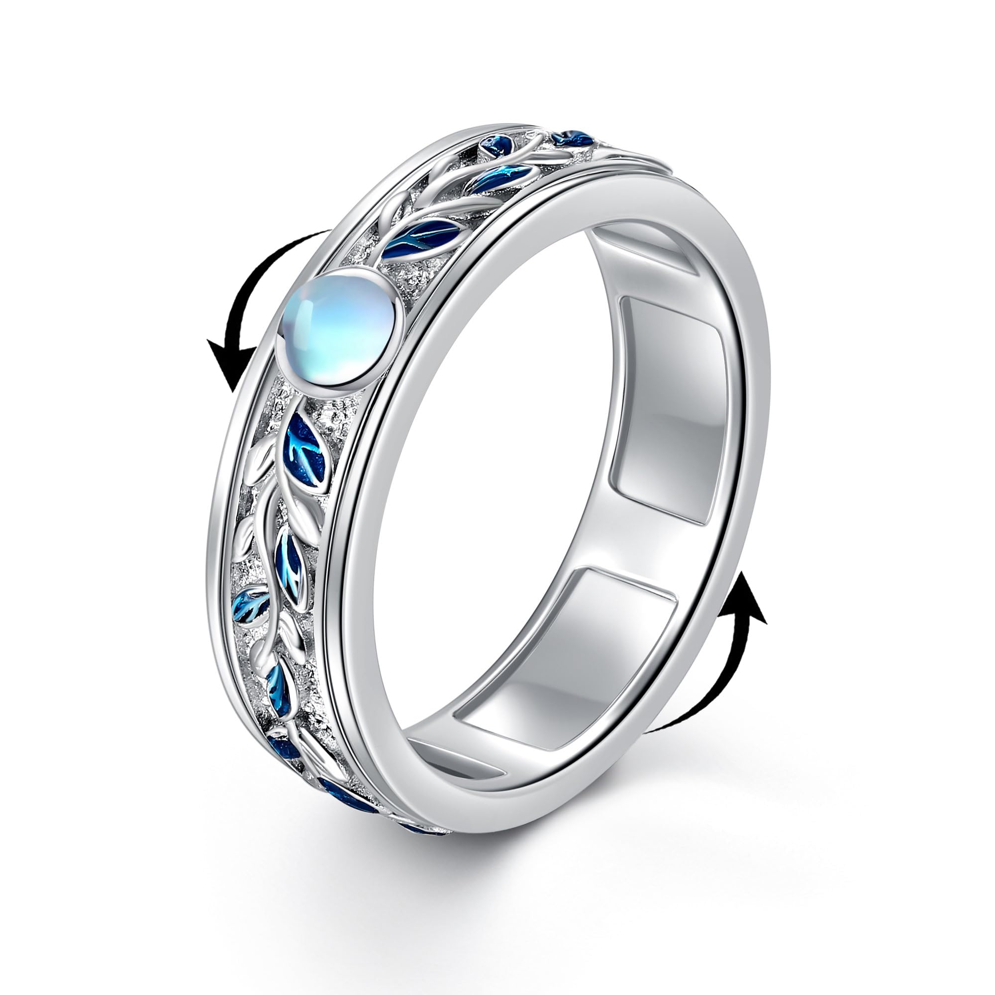 ❀Design Idea❀ - Use our sterling silver leaf fidget spinner ring to produce a peaceful, calming, and meditative effect! ❀MATERIAL❀ - Made of 925 Sterling Silver with Moonstone. High quality with fair price.Hypoallergenic. ❀Ring Size❀ - 4# Ring, Package: Gift Box ❀PACKET❀ -- Comes wit