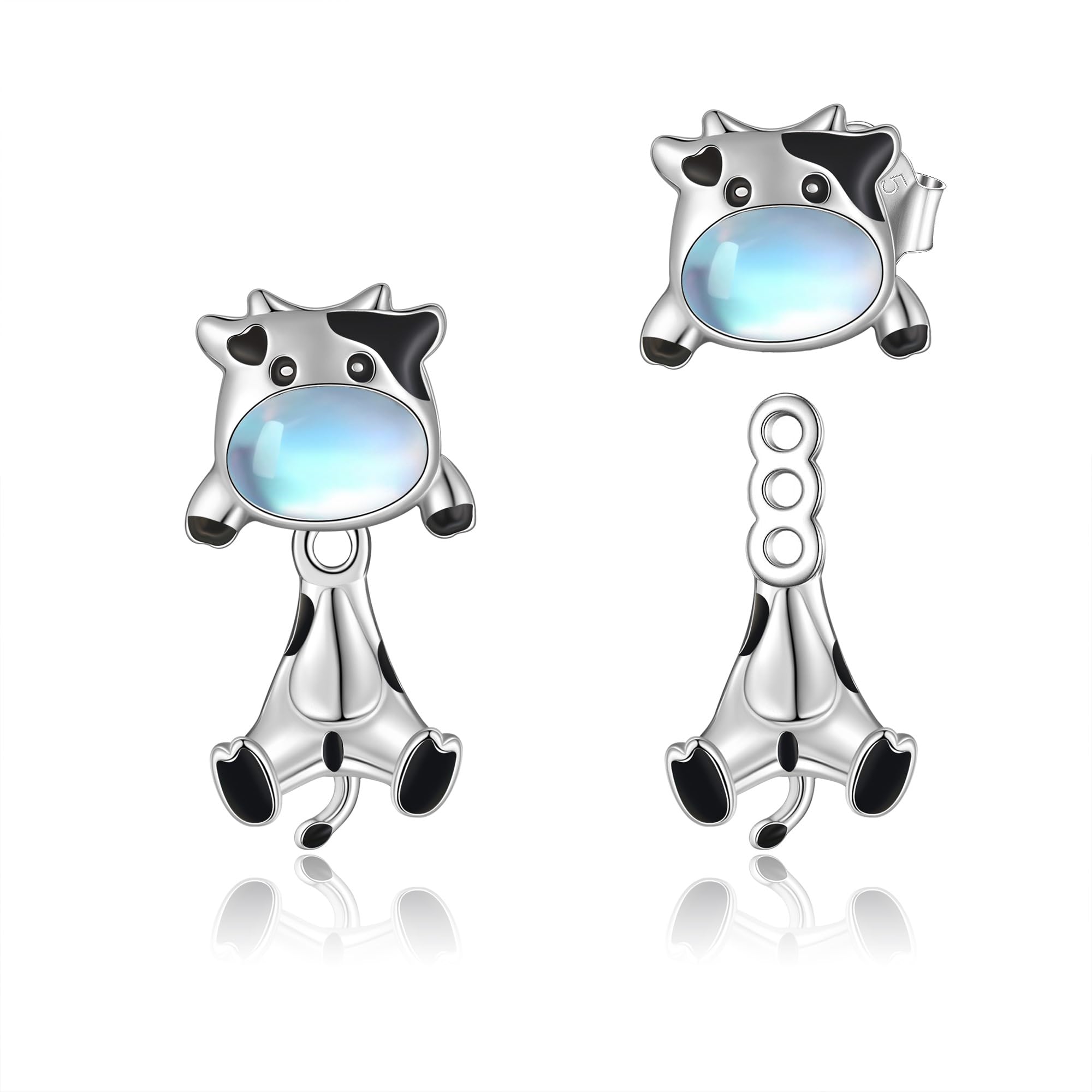 ❀Cow Earrings -- This pair of earrings is divided into a cow head and cute cow feet, which makes the earrings very interesting.Panda is so lovely make it as the best for cow lover or for everyday wear! ❀Material -- 925 Sterling Silver with Moonstone and Hypoallergenic, Especially for those with