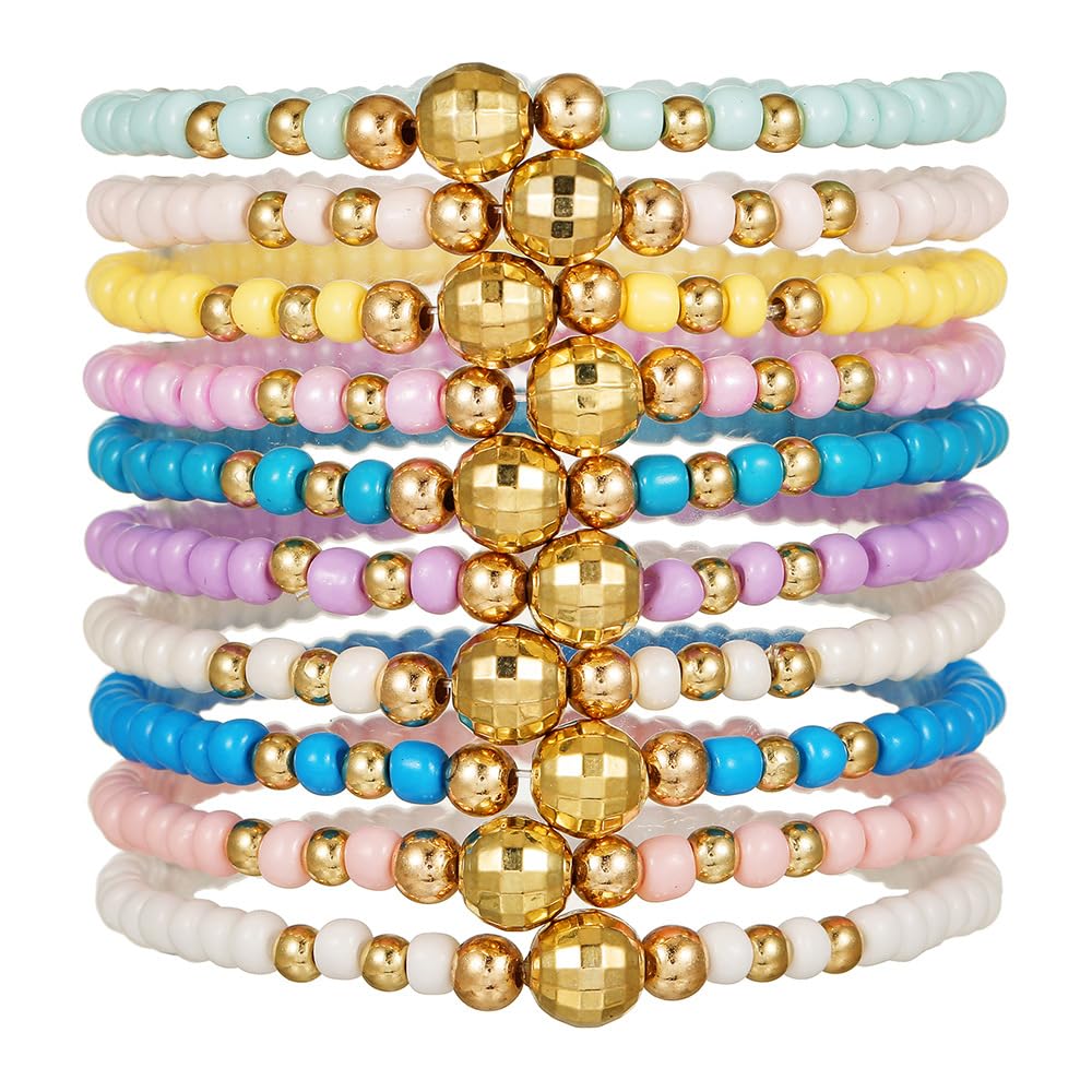 GIKILEE 10PCS Bohemian Stackable Beaded Bracelets Handmade Colorful Beads Elastic Bracelets Multilayer Vacation Beach Jewelry