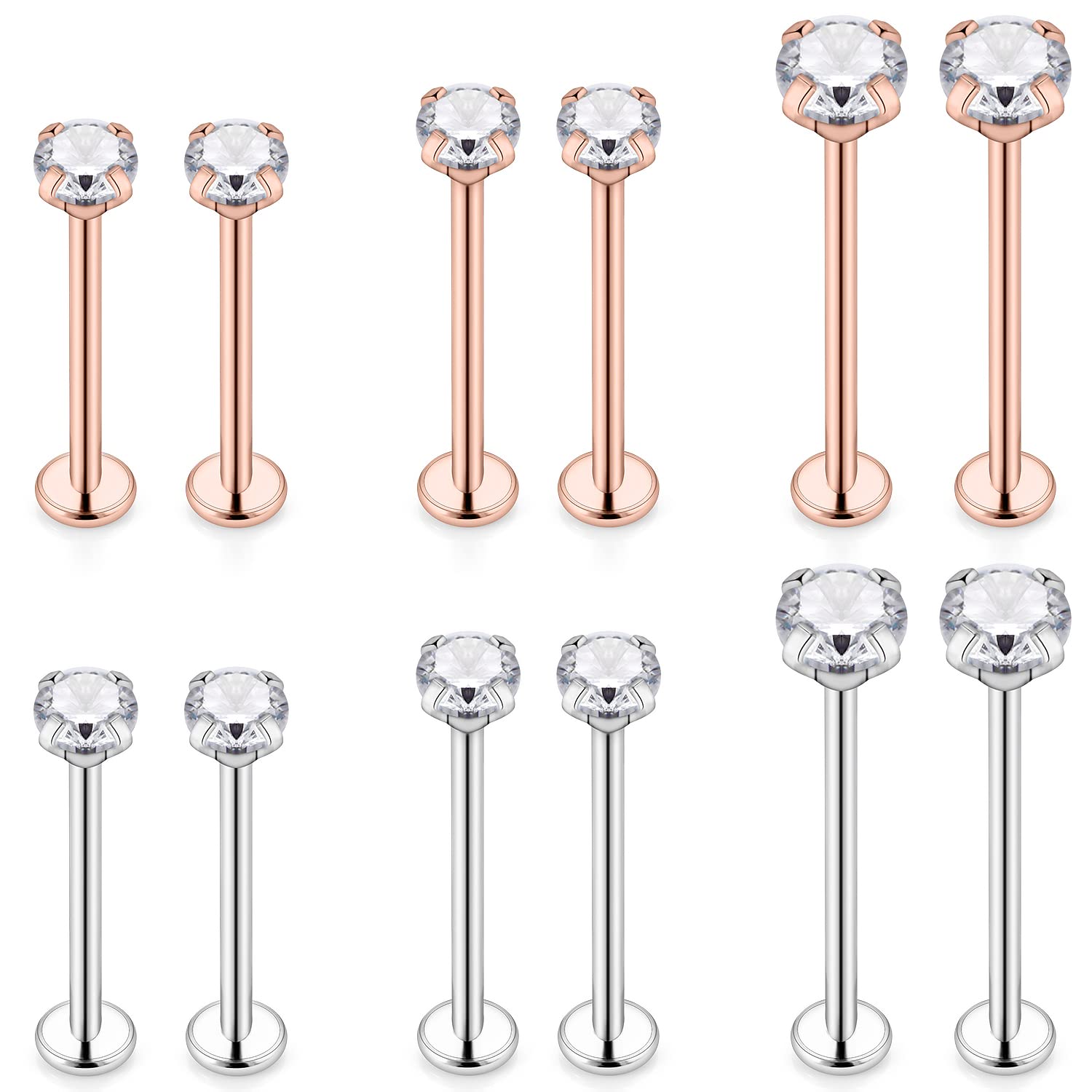 Xwnskvvz 16G 14G Different Size Cheek Piercing Jewelry for Women Men Crystal Ashley Piercing Jewelry lip Jewelry Dimple Studs Tongue Rings with Flat
