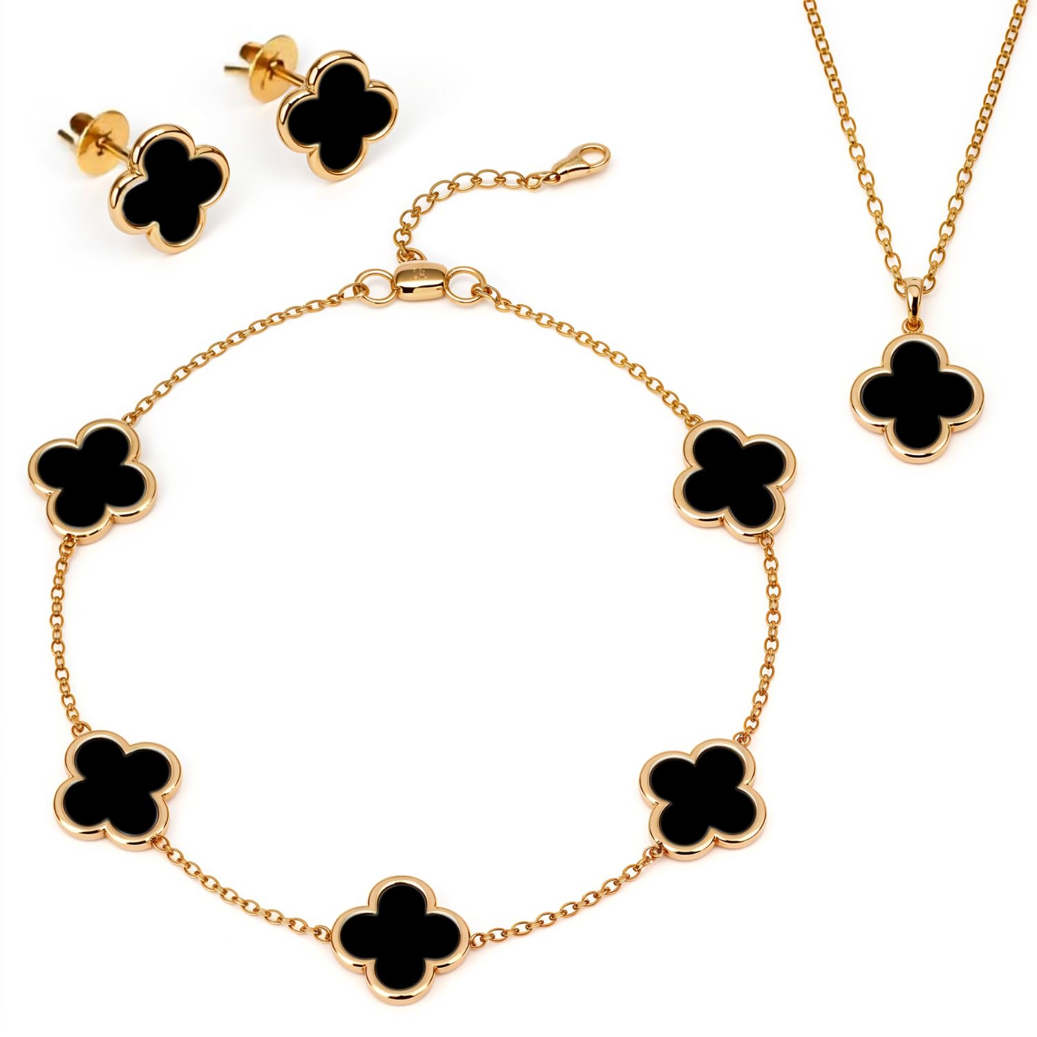 HighSpark Four Leaf Jewelry Set for Women | Designer Clover Necklace Earrings Bracelet Set | Lovely Gift