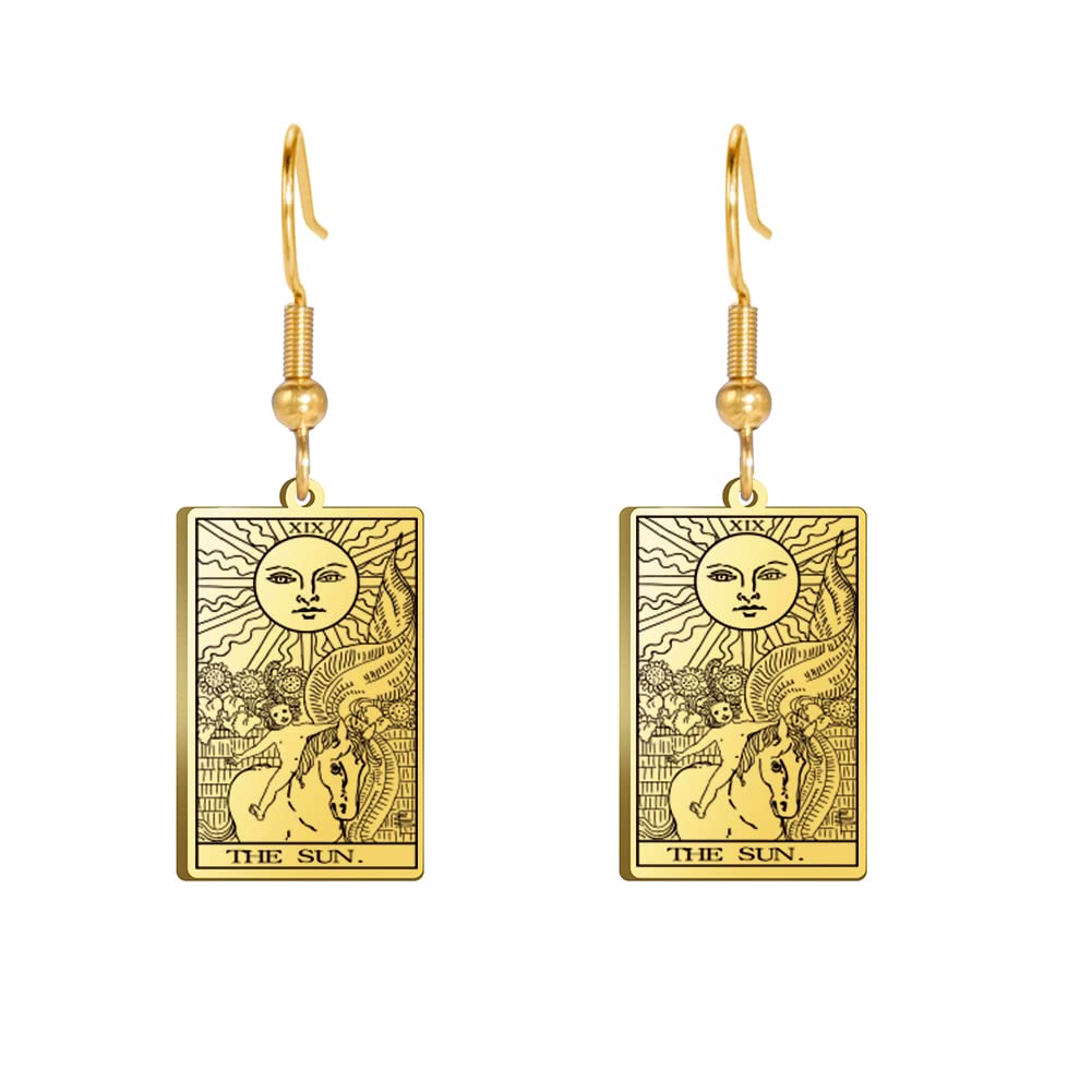 TEAMER Tarot Cards Dangle Earrings Stainless Steel Vintage Amulet Wiccan Jewelry for Women