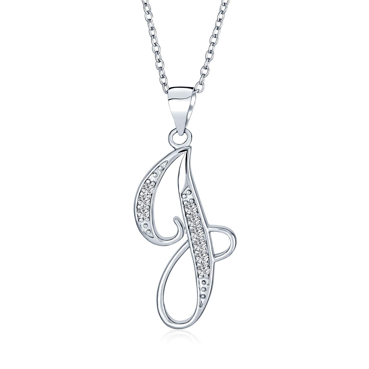 Bling Jewelry Pave CZ Script Alphabet Initial Pendant Necklace .925 Sterling Silver