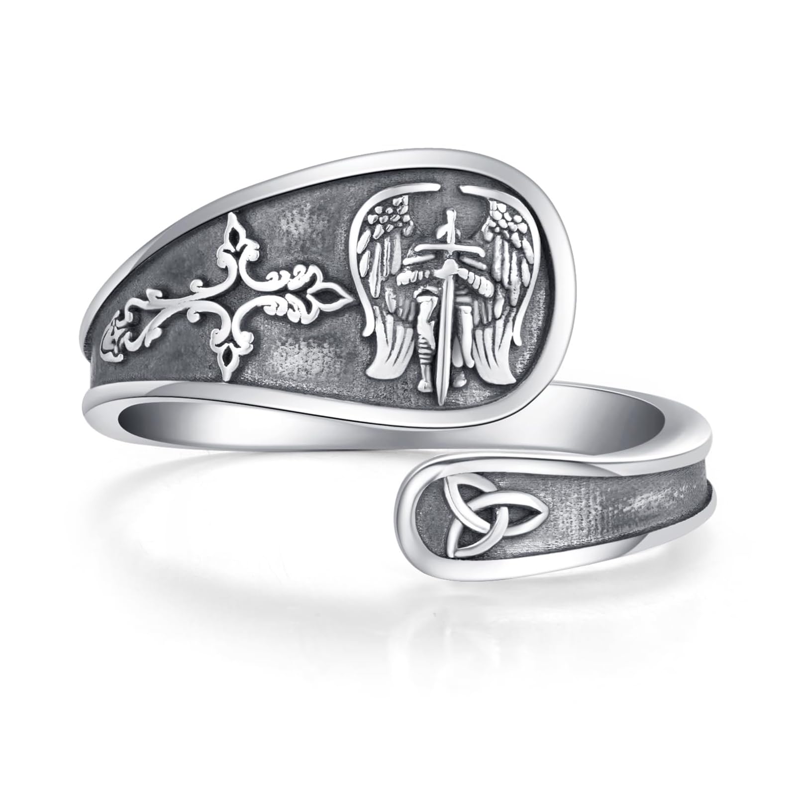 SAINT MICHAEL RING DESIGN - St. Michael is God's warrior, holding a sword, expelling evil forces, and protecting people from disasters. He is regarded as the patron saint of soldiers, police, and medical staff. This Archangel Michael ring is exquisitely crafted, vintage, and unique. It is a perfect