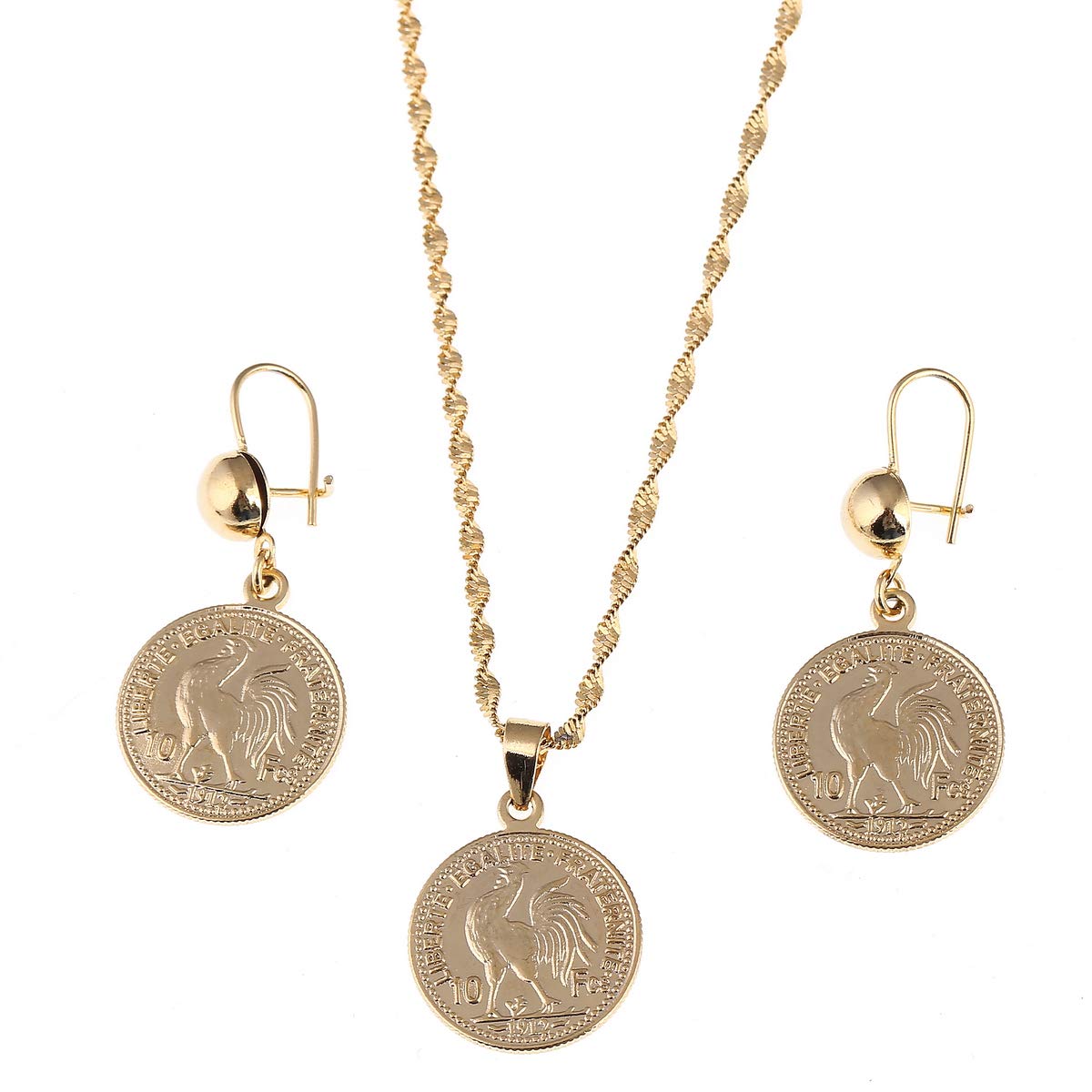 24K gold vacuum plating high quality pendant chain Nickel free and lead free with gold overlay Best gift for your friend, family, lovers and so on Franc Coin Pendant Necklace Earrings Lecoqgaulois Coin Gold Color Old French Coin Jewelry Yongkan Jewelry Yongkan Jewelry is a fashion jewelr