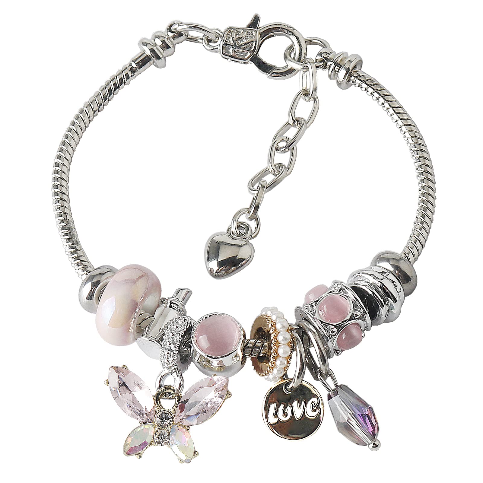 Butterfly bracelets for teen girls is a combination of high-quality stainless steel wire chain, cartoon alloy pendants and crystal beads.bracelets for teen girls is fashionable and beautiful, and its colorful colors can always shine the eyes of friends. Fashion mainstream: The cute charm bracelets f