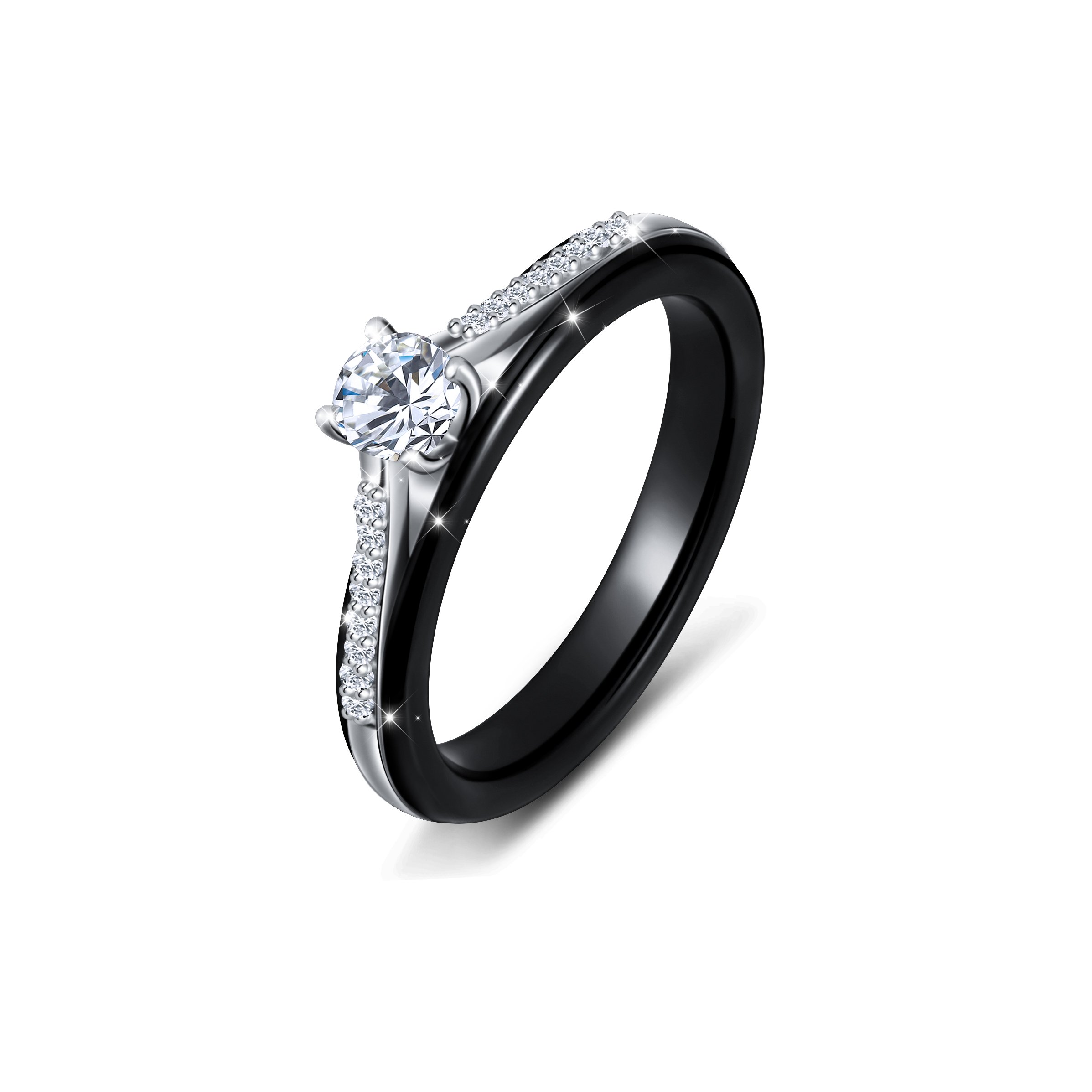 S925 Sterling Silver Ceramic Engagement Wedding Black Promise Band Rings for Her Women Wife Bride Mom Lover Jewelry Birthday