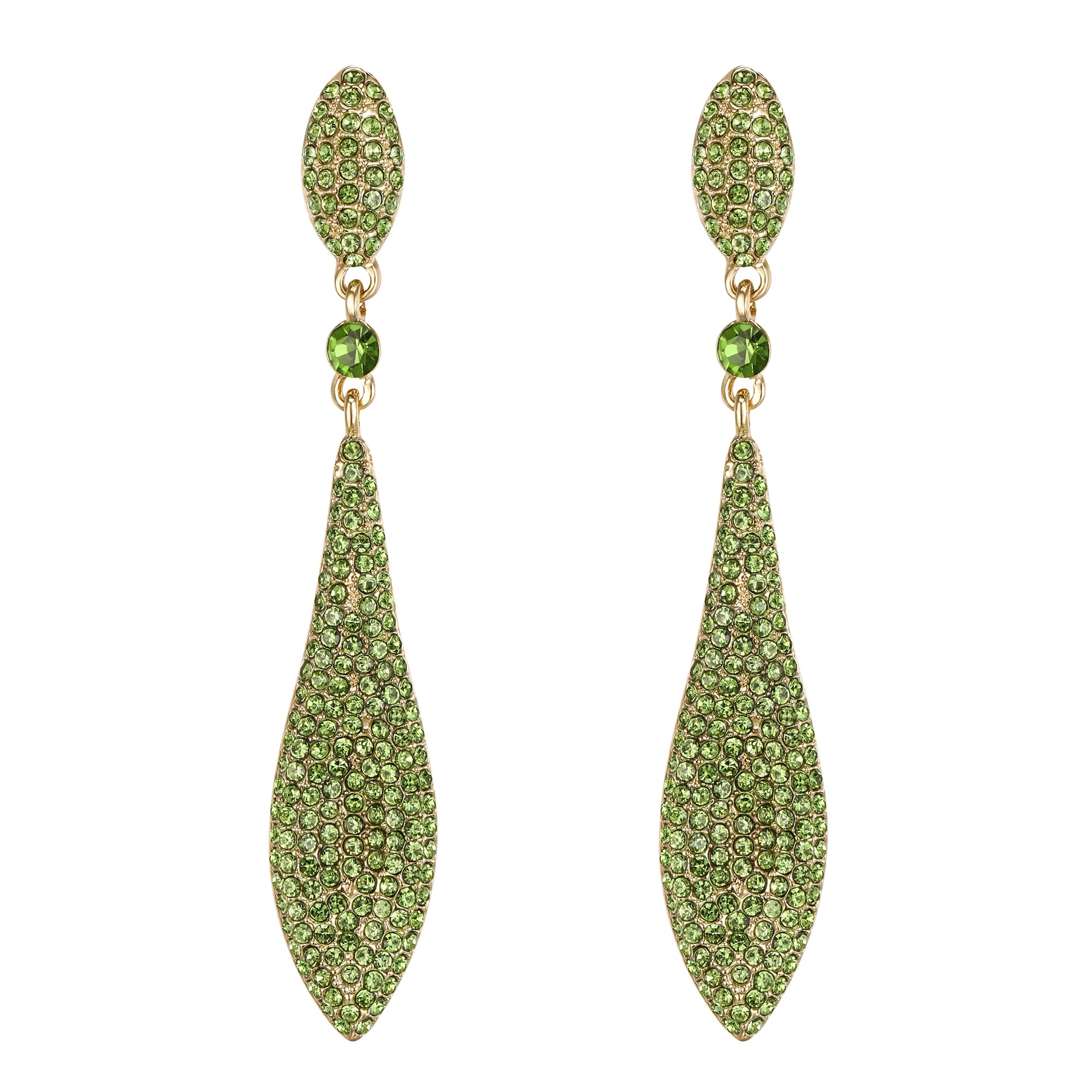These dangle drop earrings are made of crystals and alloy. The refraction of different light will make the color of the diamond to change, so the color of the earrings will look a little different from the picture. Wearing a strapless dinner dress, formal gown or casual wear, matching this earrings,