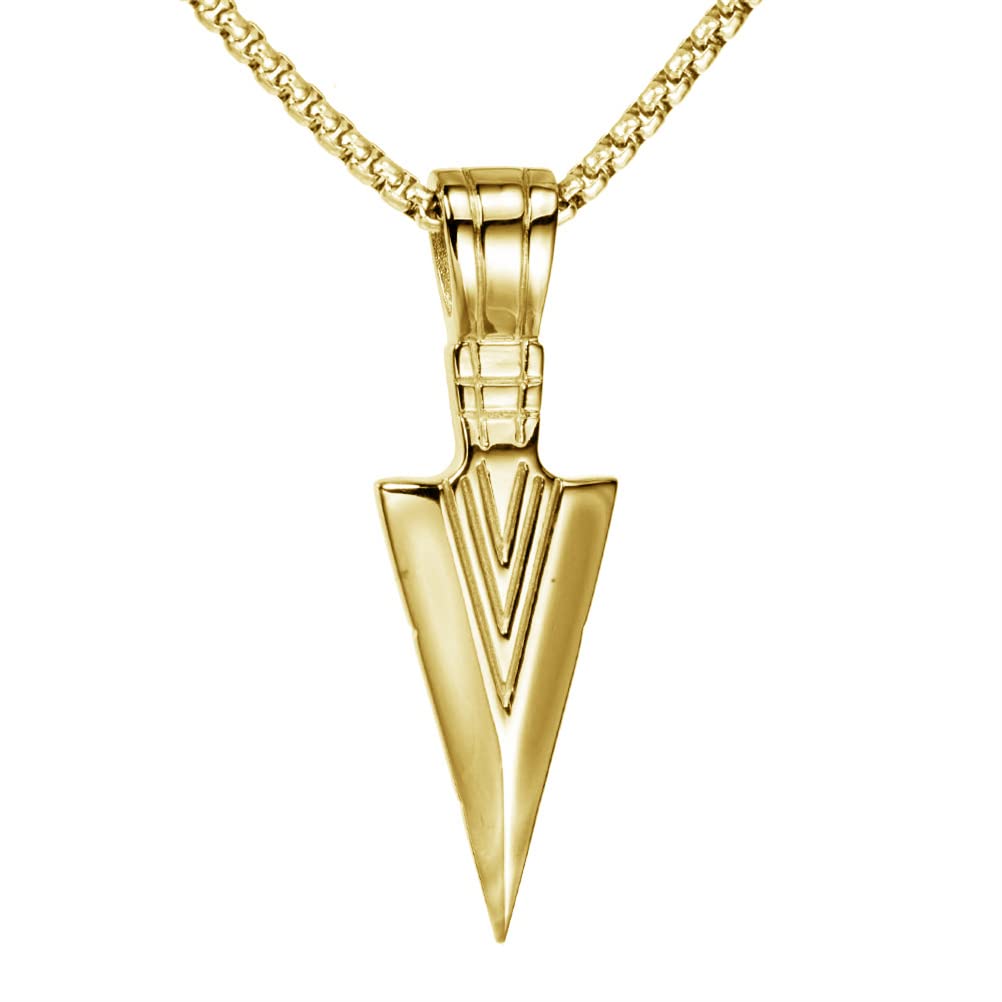 PAURO Men's Stainless Steel Jewelry Spear Point Arrowhead Pendant Necklace Multi Colors