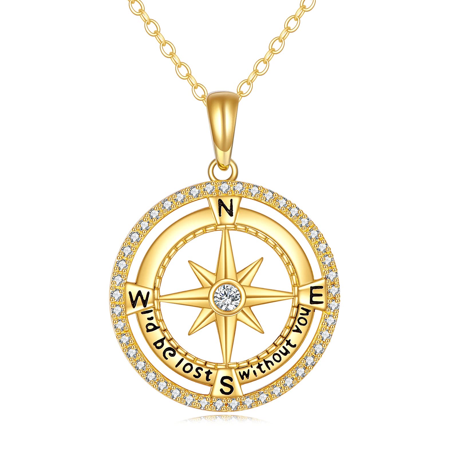 ❤DESIGN DEAL❤ -- This 14K Solid Gold Necklace features compass engraved “I'd be lost without you” make it unique.The compass guides your future direction make it as the best gift for her or perfect for everyday wear ❤Material❤ -- This gold compass necklace are making of real 14k gold, wh