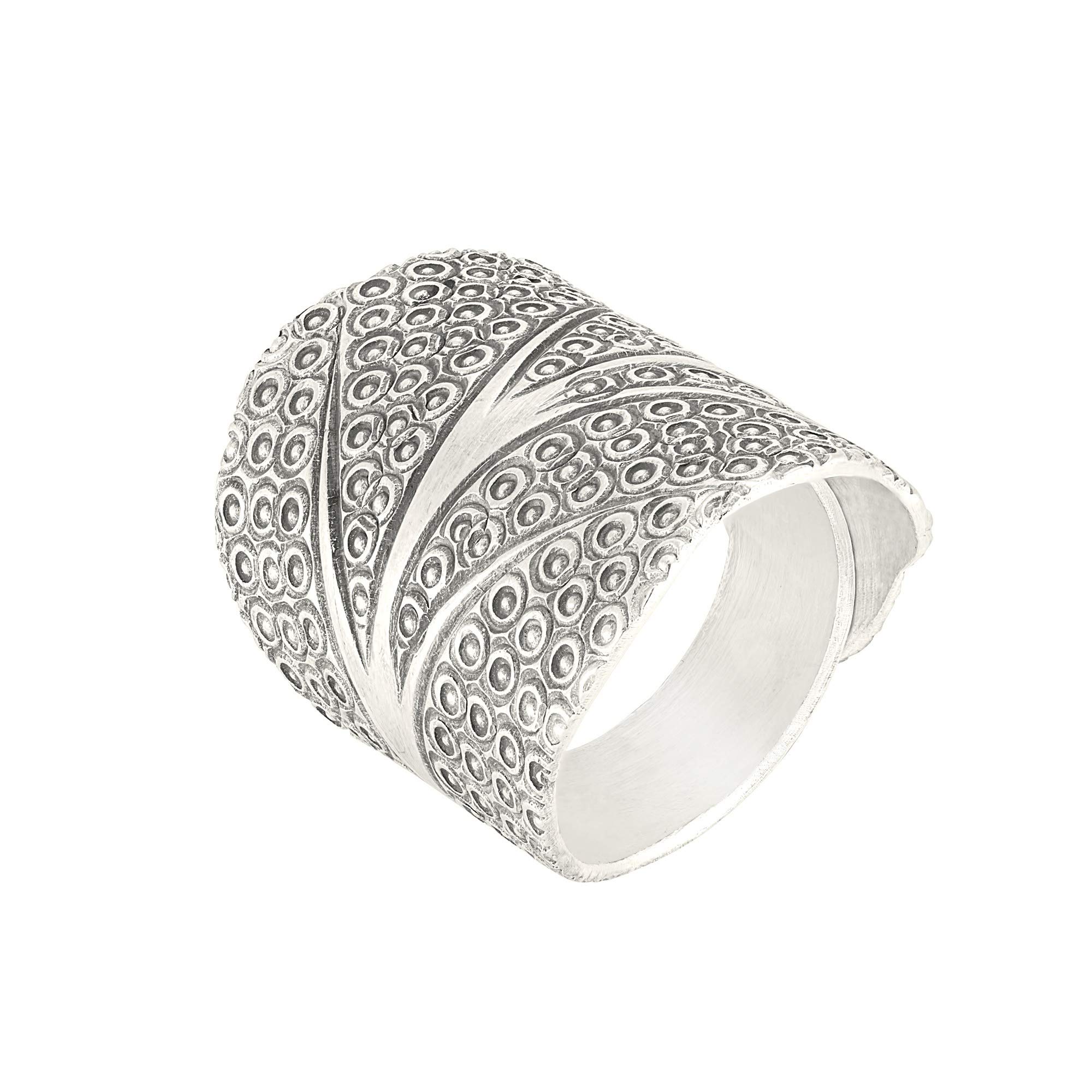 81stgeneration Hill Tribe Silver Tree Shaped Wrap Ring - Adjustable Wide Ring With Engraved Circle Pattern - Unique Nature-Inspired Statement Jewelry