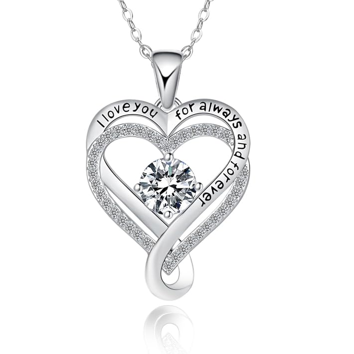 snugcubby Sterling Silver Pendant Necklace for Women, Teen Girls Birthstone Necklaces silver Wedding Anniversary Heart Necklace Women's Jewelry Mother