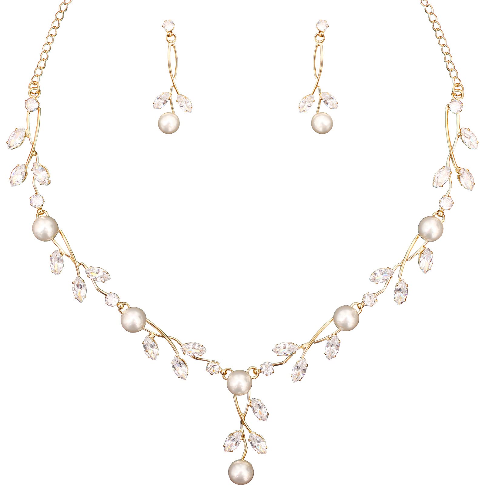 Specification: Earrings + Necklace, 2 types Jewelry of wedding,Statement Necklace Size:16.5-19 in; Dangle Earrings length:2.2 in; Lightweight and Comfortable to Wear. Perfect Jewelry Set for Women Ladies. Material: Adorned with selected shiny Austrian crystal and Pearls and Cubic Zirconia, crafted w