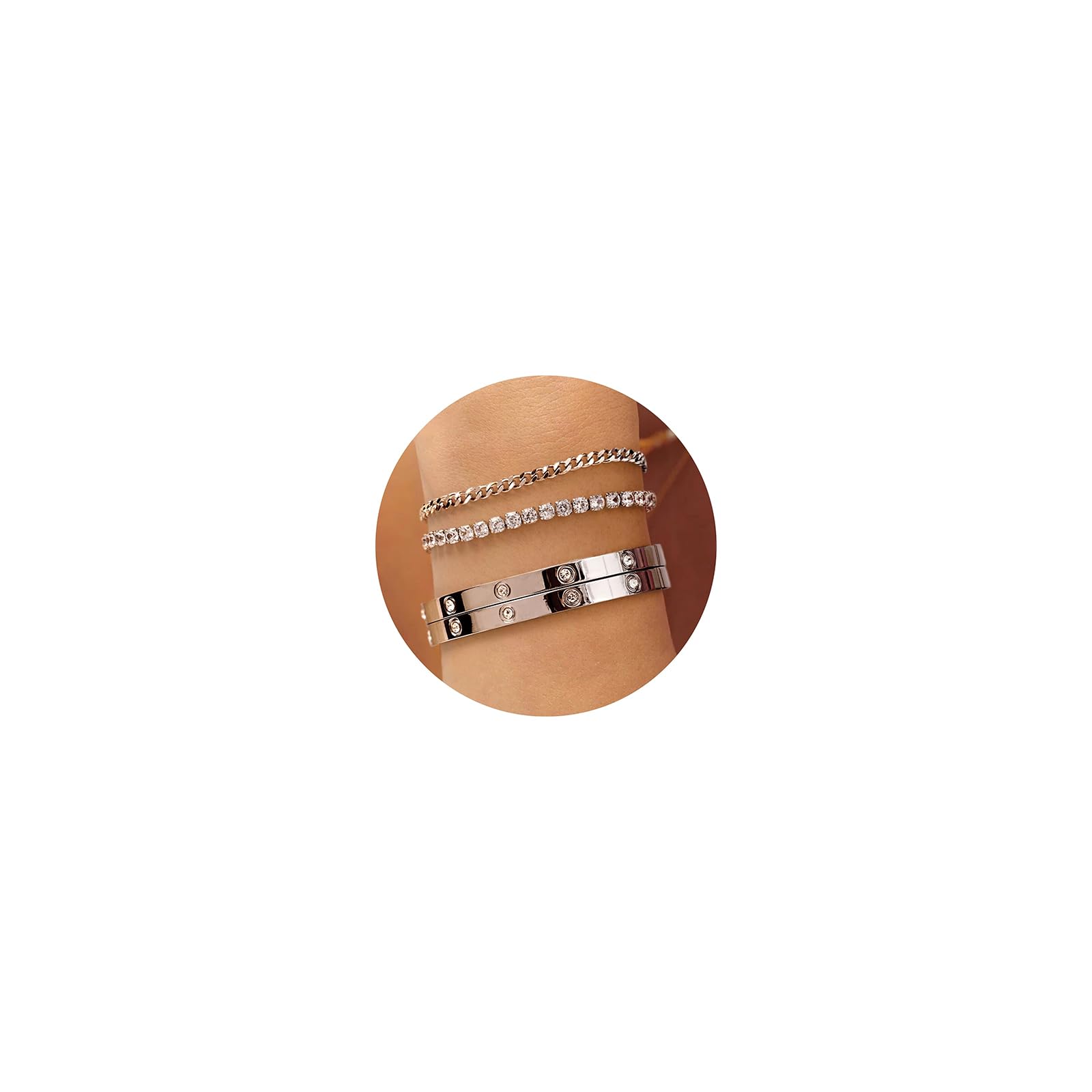 Kainier Gold Bracelets Sets for Women 4pcs Love Bangle Bracelet Cubic Zirconia Tennis Cuban Chain Stacking Gift for Love Gold/Silver