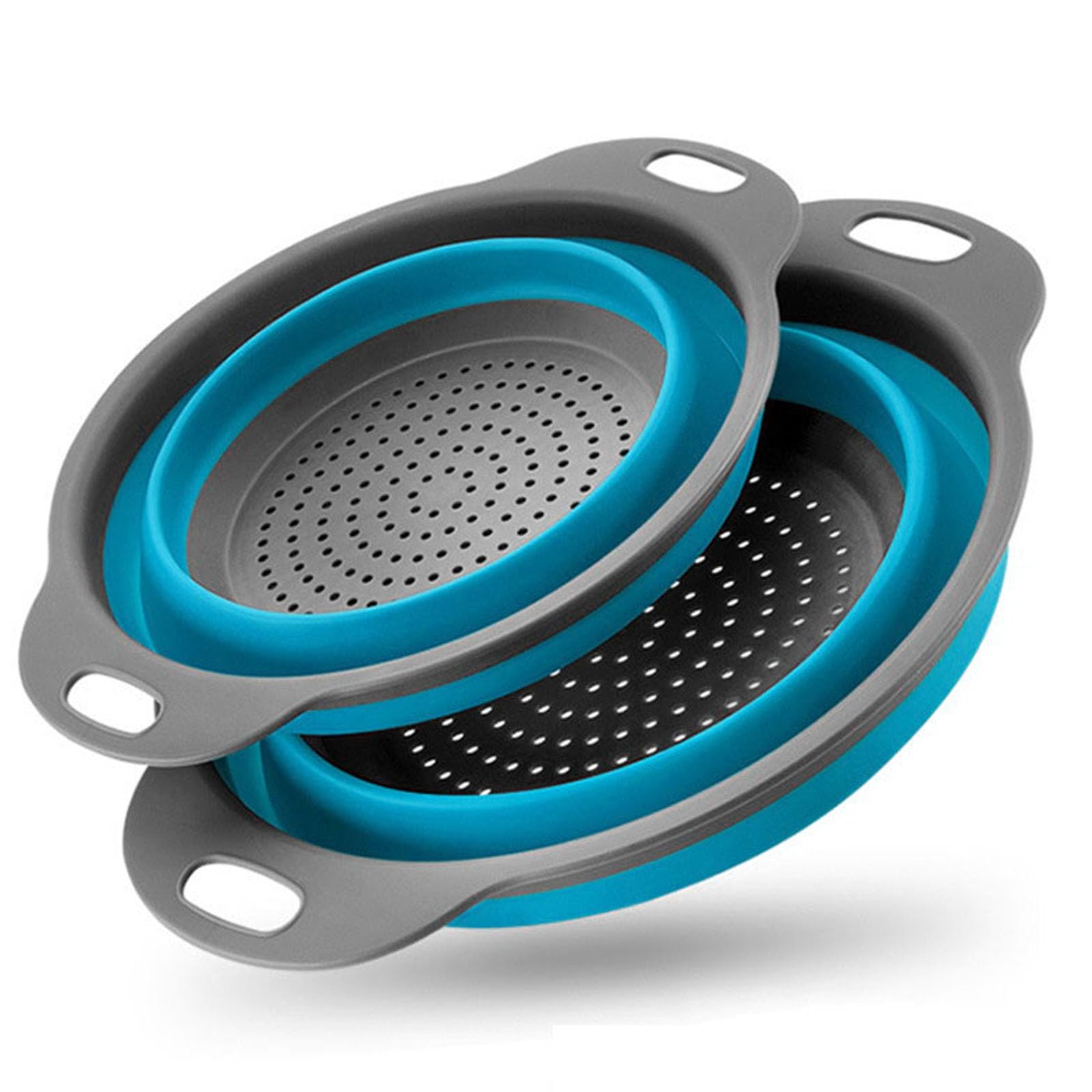 Collapsible Colander Set of 2 Silicone Kitchen Strainer Set, Perfect for Draining Pasta, Vegetable and fruit for Kitchen and Travel Use (Blue)
