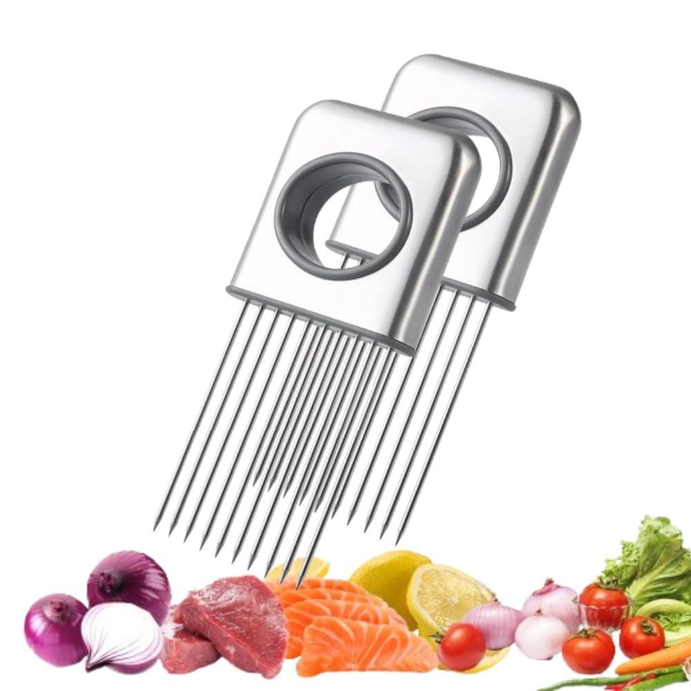 Onion Slice Holder, 2025 Upgraded Stainless Steel Onion Holder for Slicing Lemon Slicer Vegetable Cutter, Kitchen Chopper Slicing Assistant Tool for