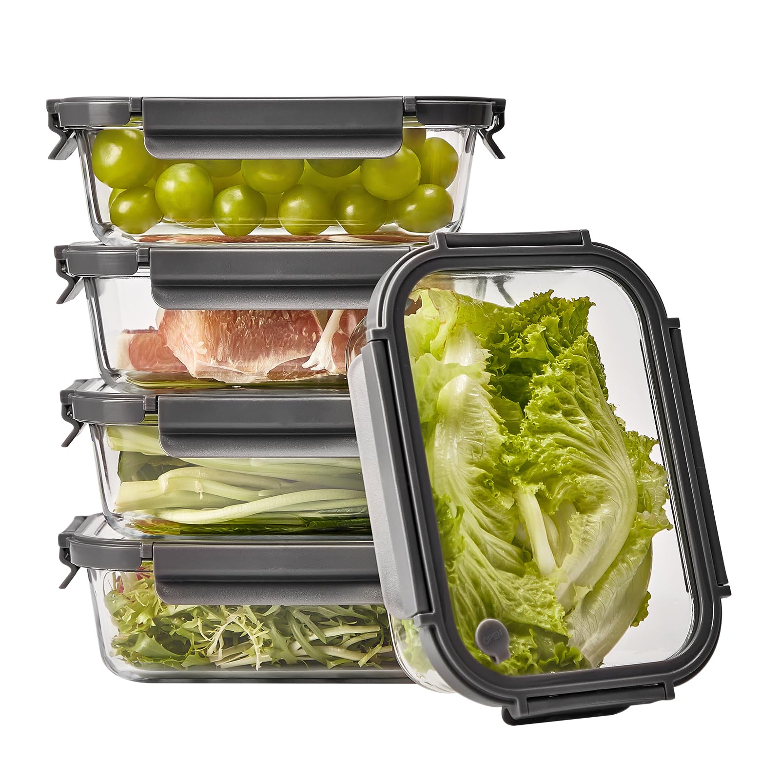 glass Airtight Seal for Freshness: Our Glass Food Storage Containers feature upgraded lids with silicone sealing rings and clear glass lids, ensuring your food stays fresh for longer periods. Versatile and Convenient: These glass meal prep containers with lids are perfect for meal prep, storing left
