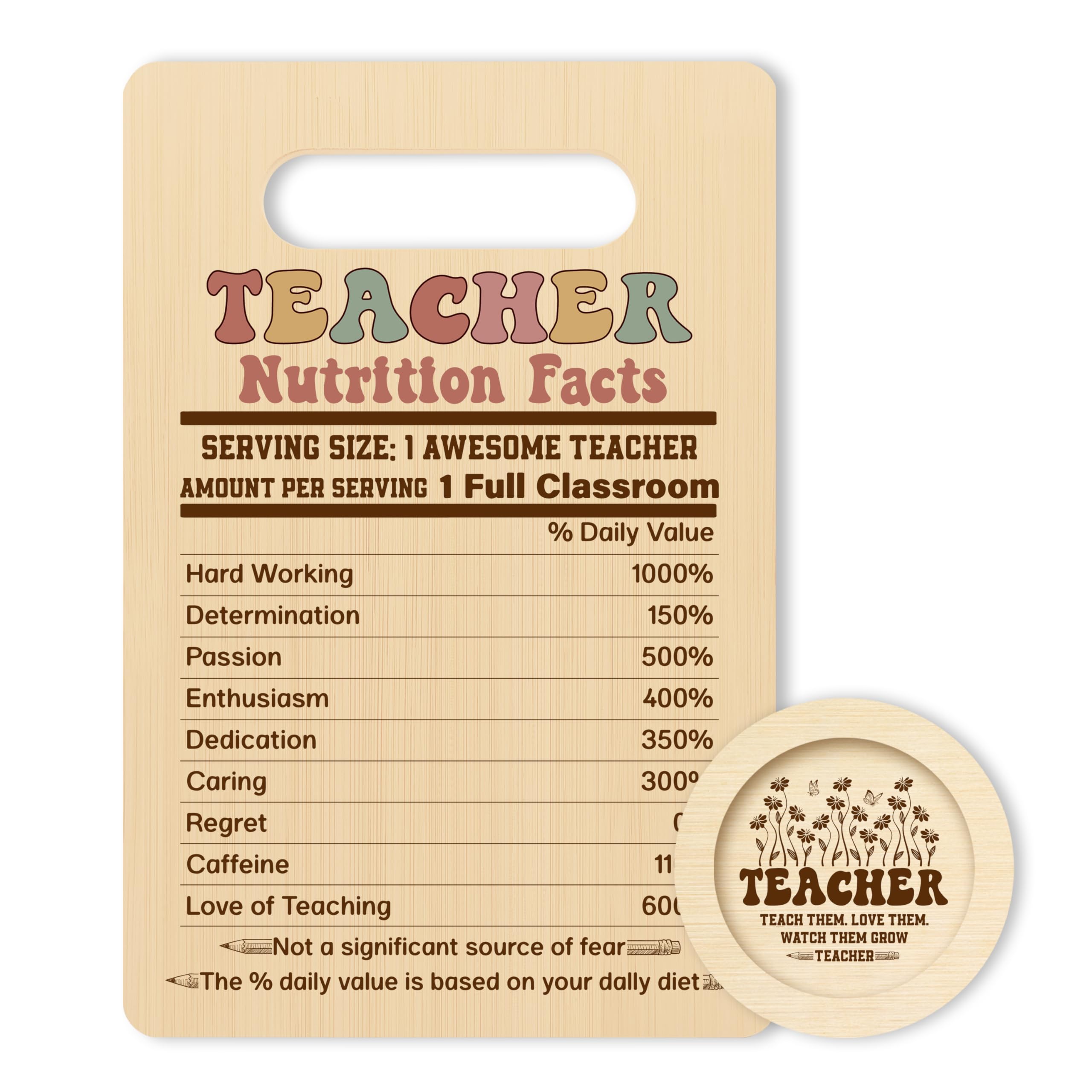 Gifts For Teacher, Teacher Nutrition Cutting Board With Coaster Set, Birthday Gifts For Women, Teachers Day Christmas Kitchen Supplies -04