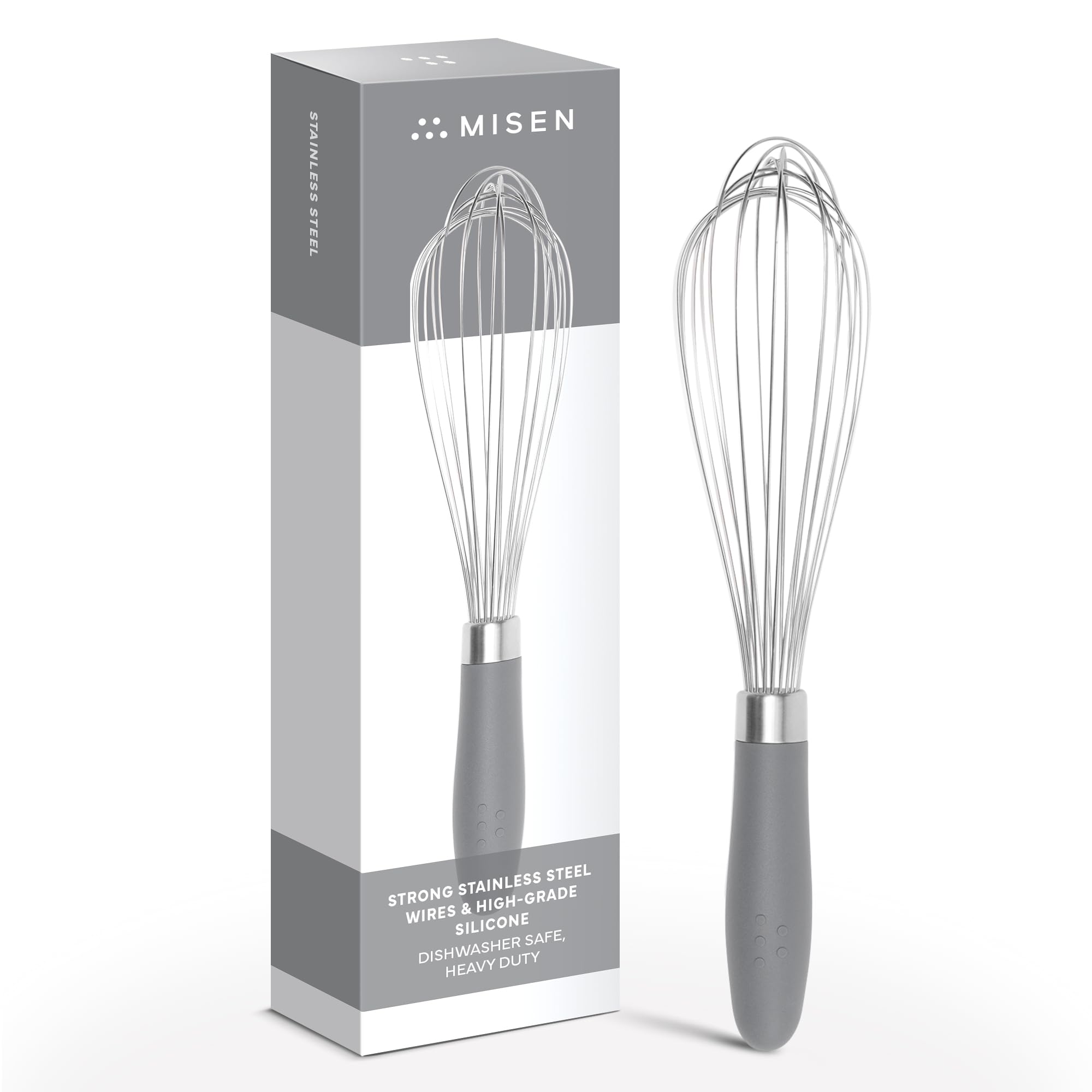 Misen Stainless Steel Balloon Whisk - Dishwasher Safe - Ergonomic Silicone Grip, Versatile Cooking Whisk for Eggs, Durable Construction -