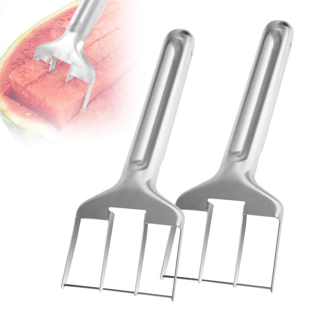 【Sturdy Stainless Steel Construction】 This Watermelon Fruit Slicer Cutter Tool features a sturdy stainless steel handle and robust stainless steel cutting edge, ensuring durability without bending or warping. As essential kitchen gadgets for fruit lovers, this watermelon cutter slicer tool maint