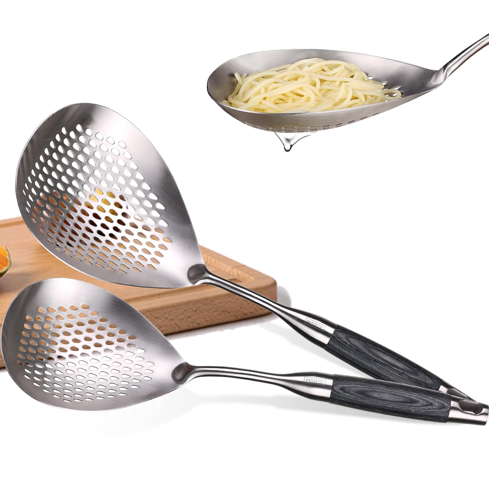 MARTE Skimmer Slotted Spoon,304 Stainless Steel Pasta Spider Strainer Ladle for Frying and Cooking,Set of 2 Kitchen Colanders & Food Strainers,Serving
