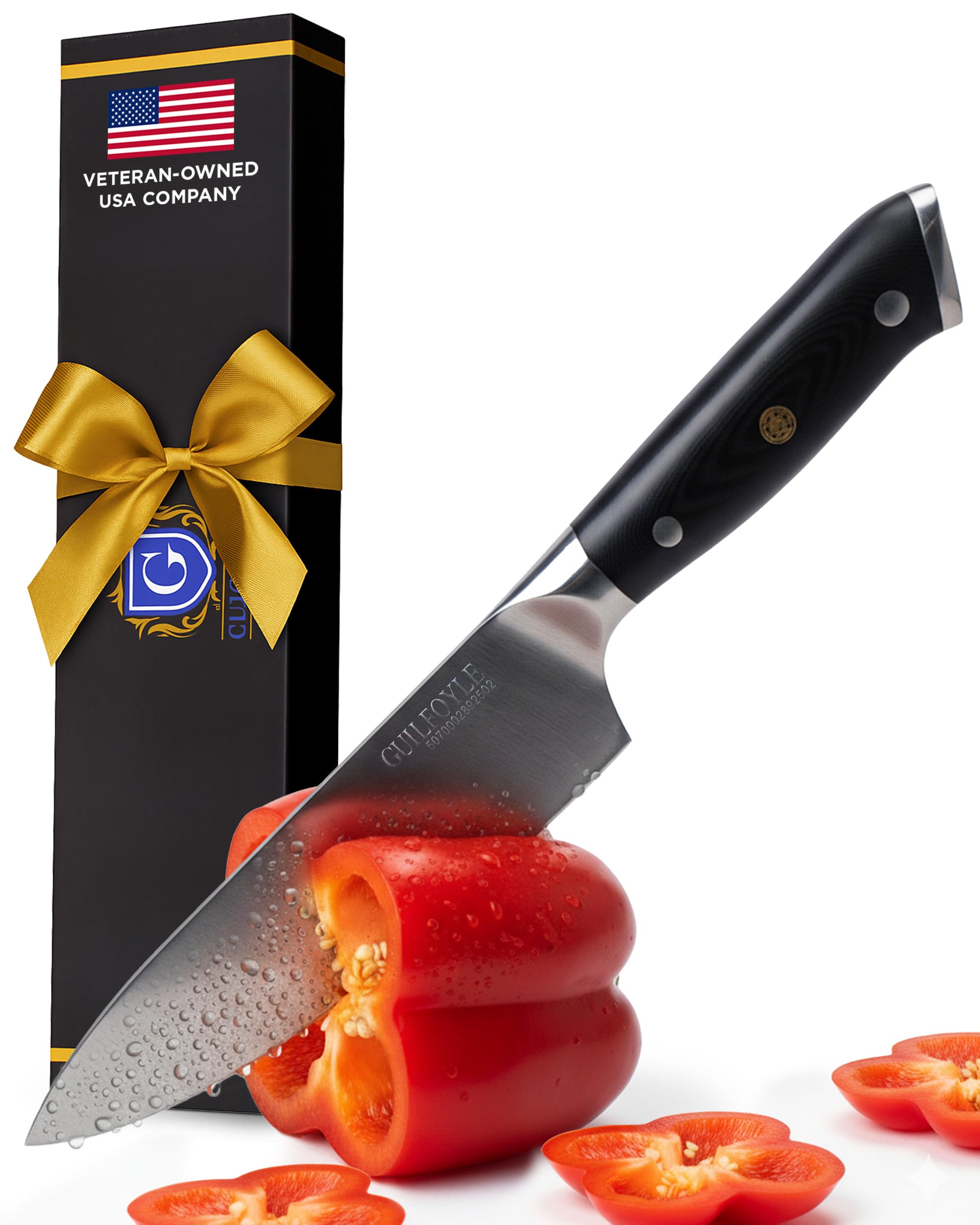 Guilfoyle Chef Knife 8 Inch – Stainless Steel Kitchen Knife with Ergonomic Handle & Full Tang – Cooking Gifts for Home Chefs – Gift Box Included