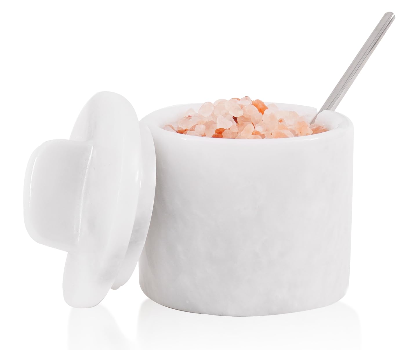 SPESHSTONES Marble Salt Cellar with Lid White 4 Inch Salt Container for Countertop, Sugar Bowl & Spice Jar, Small Seasoning Containers for Kitchen
