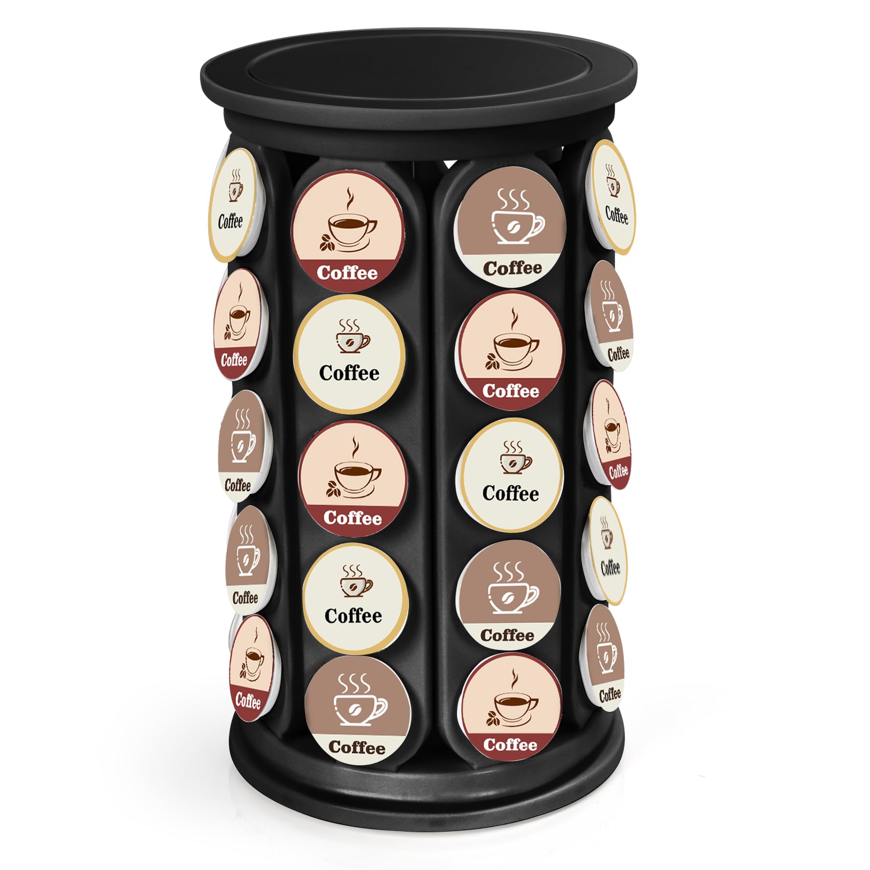 【40 Pods Large Capacity】 Holds 40 Keurig Kcup pods securely in a compact rotating design. The 5 sections hold up to 8 capsules each. Our carousel is developed specifically to fit all standard Keurig K Cup capsules, including taller varieties. (Note: Coffee pods not included.) 【Smoooth 360° Ro