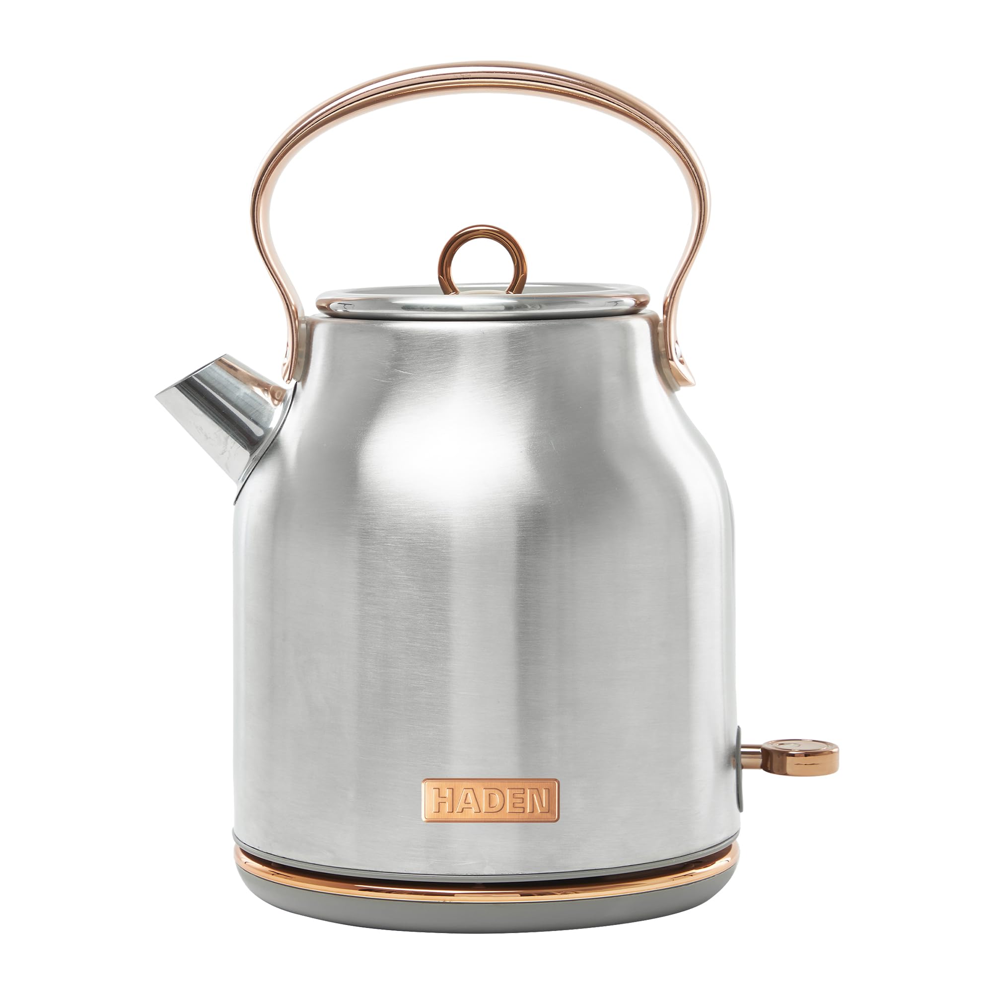 Haden Heritage 1.7 Liter Stainless Steel Electric Kettle, Hot Water Kettle with 360-Degree Base and Auto Shutoff, Steel & Copper