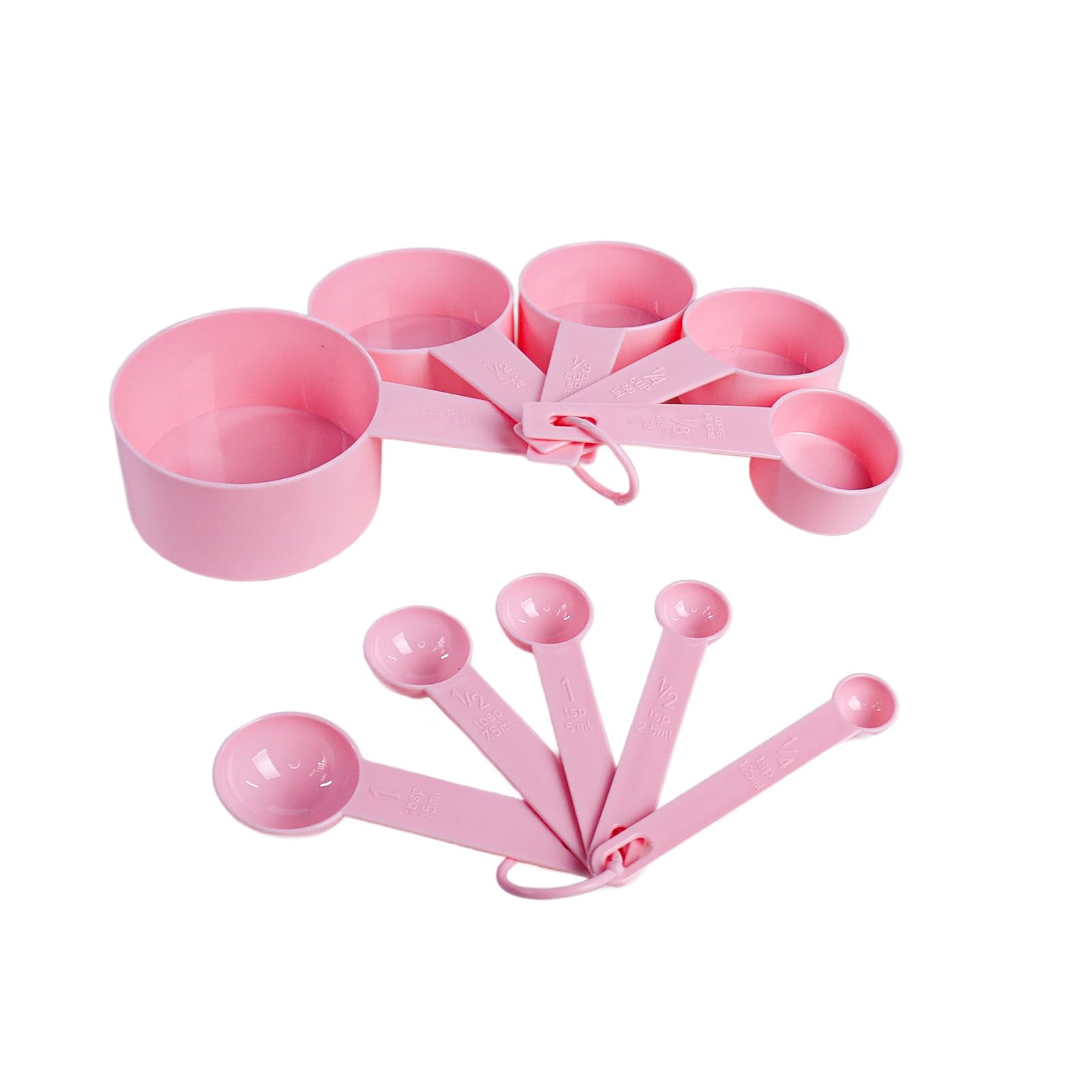 10-Piece Plastic Measuring Cups and Spoons Set: Includes 5 measuring cups and 5 spoons made of BPA-free durable plastic, perfect for measuring dry and liquid ingredients with accuracy in every scoop Lightweight and Stackable Design: IThe nesting design saves space in kitchen drawers while making it