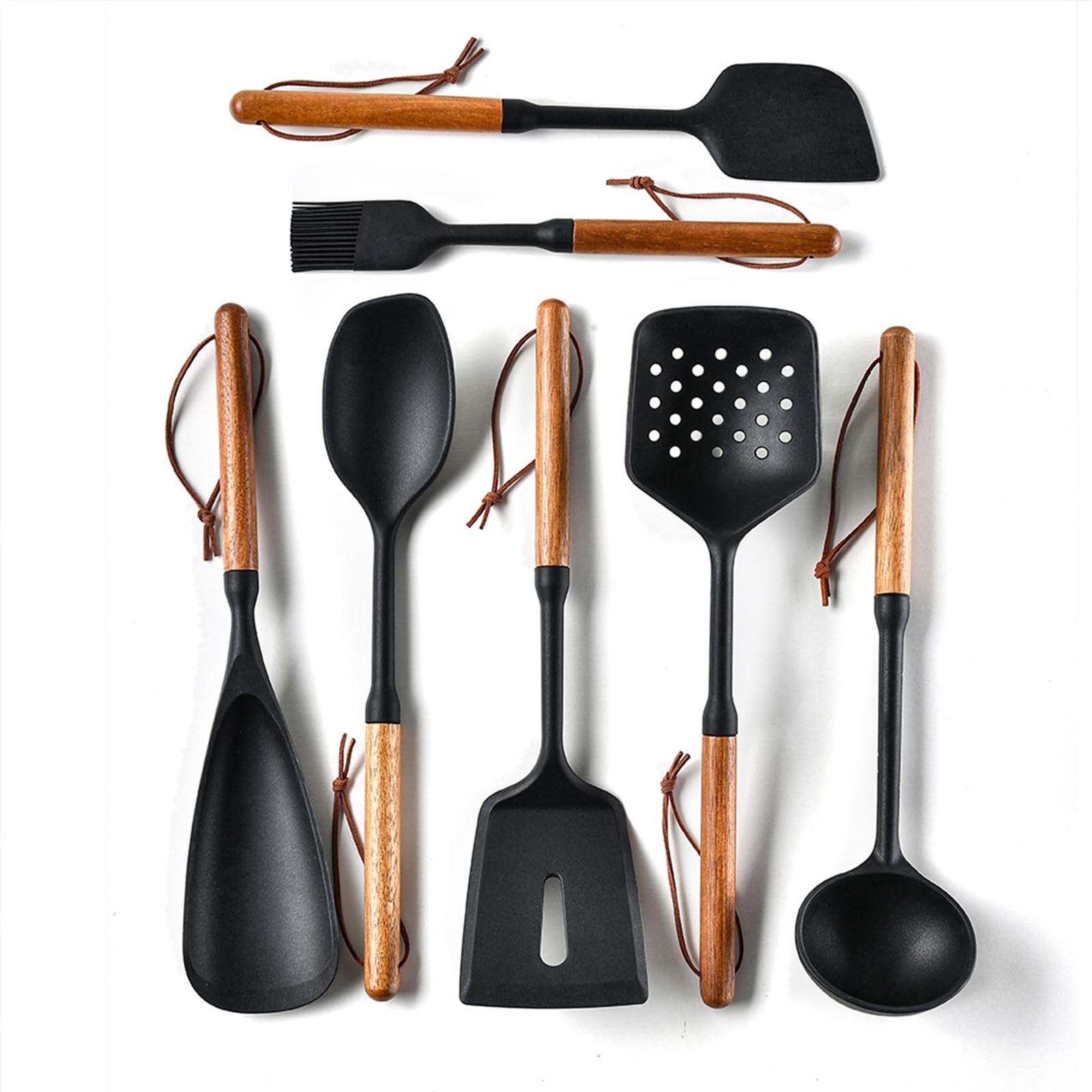 Silicone Cooking Utensils Set - 7 PCS Kitchen Utensils Set with 446°FHeat-Resistant Silicone & Wood Handle, Kitchen Utensils Spatula Set for Non-Stick