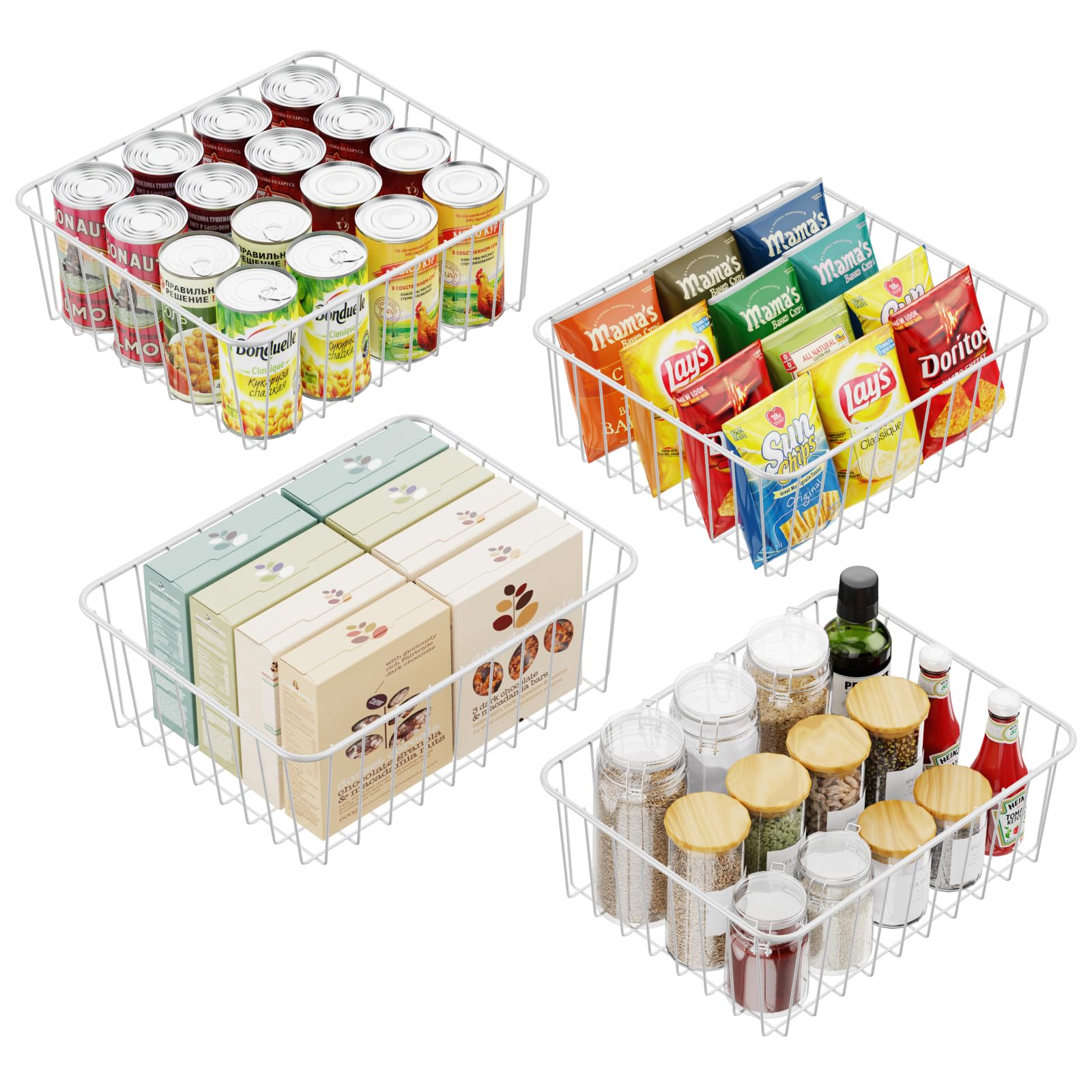 iSPECLE Wire Basket - 4 Pack Small Wire Storage Baskets Organizer Bins, Pantry Cabinet Shelf Kithen Storage Organization for Easily Get Items, White