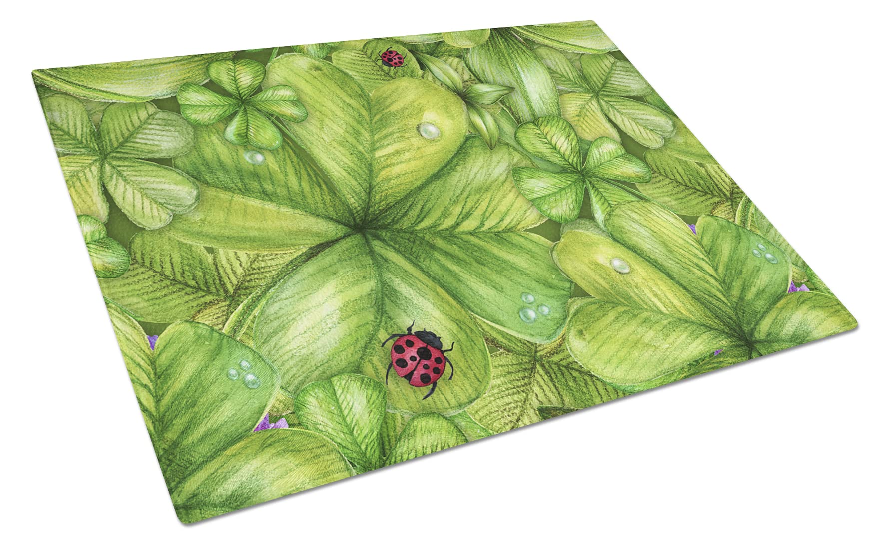 Caroline's Treasures BB5754LCB Shamrocks and Lady bugs Glass Cutting Board Large Decorative Tempered Glass Kitchen Cutting and Serving Board Large