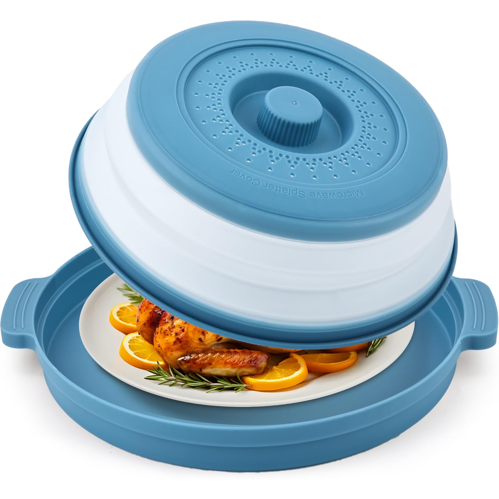 2 in 1 Microwave Splatter Cover:Microwave splatter cover with a base plate, can cover the food in all directions, effectively avoiding the cooking process of food splashing to save cleaning time, to avoid the food moisture evaporation, to improve the heating effect of more uniform heating, better ta