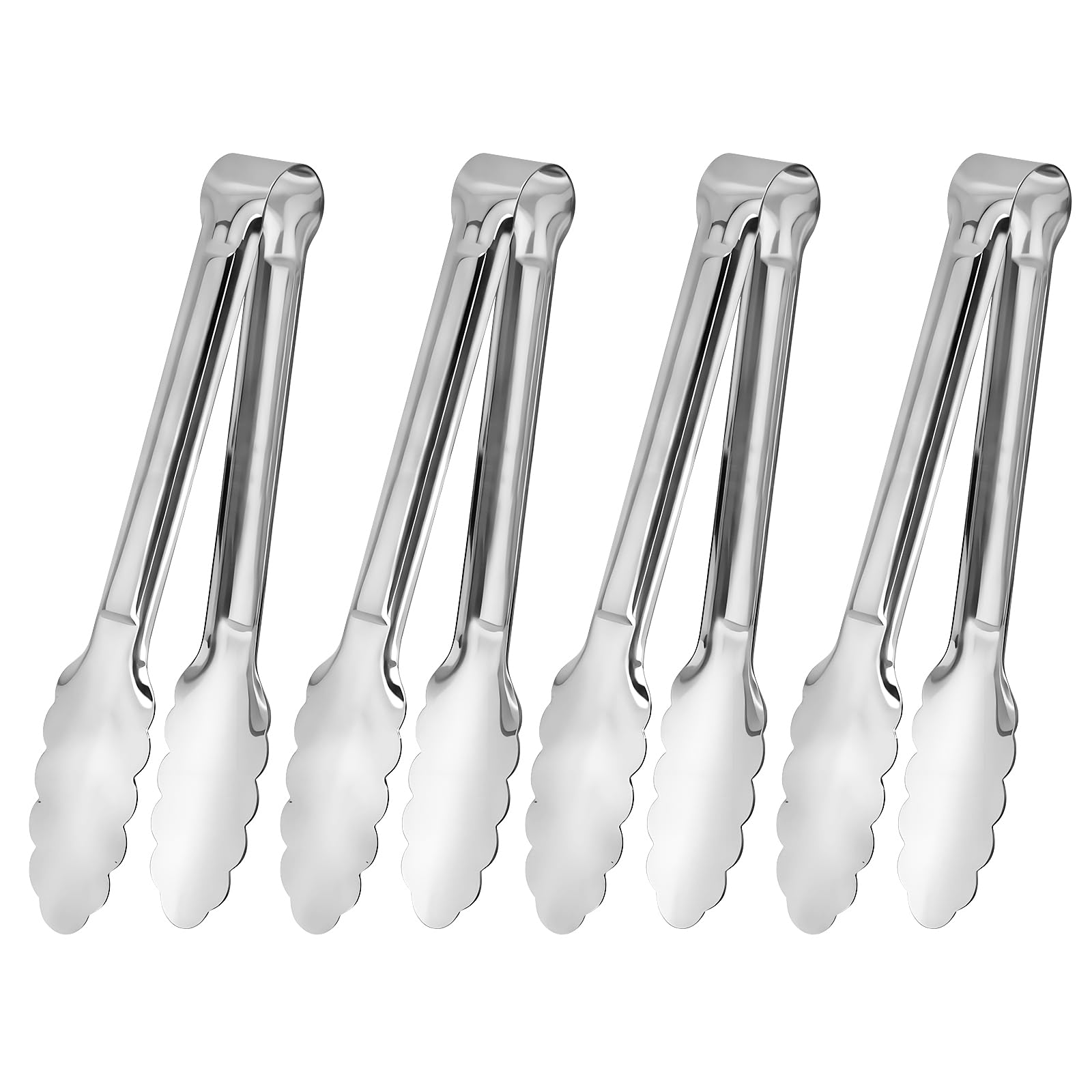 Small Size to Serving Food: These small tongs are suitable for serving food. We offer 2 different sizes of small serving tongs, including 5 inches 6-pack, 7 inches 4-pack. Please choose the appropriate size. High-quality Materials and Durable Structure:These small tongs are made of high-quality st
