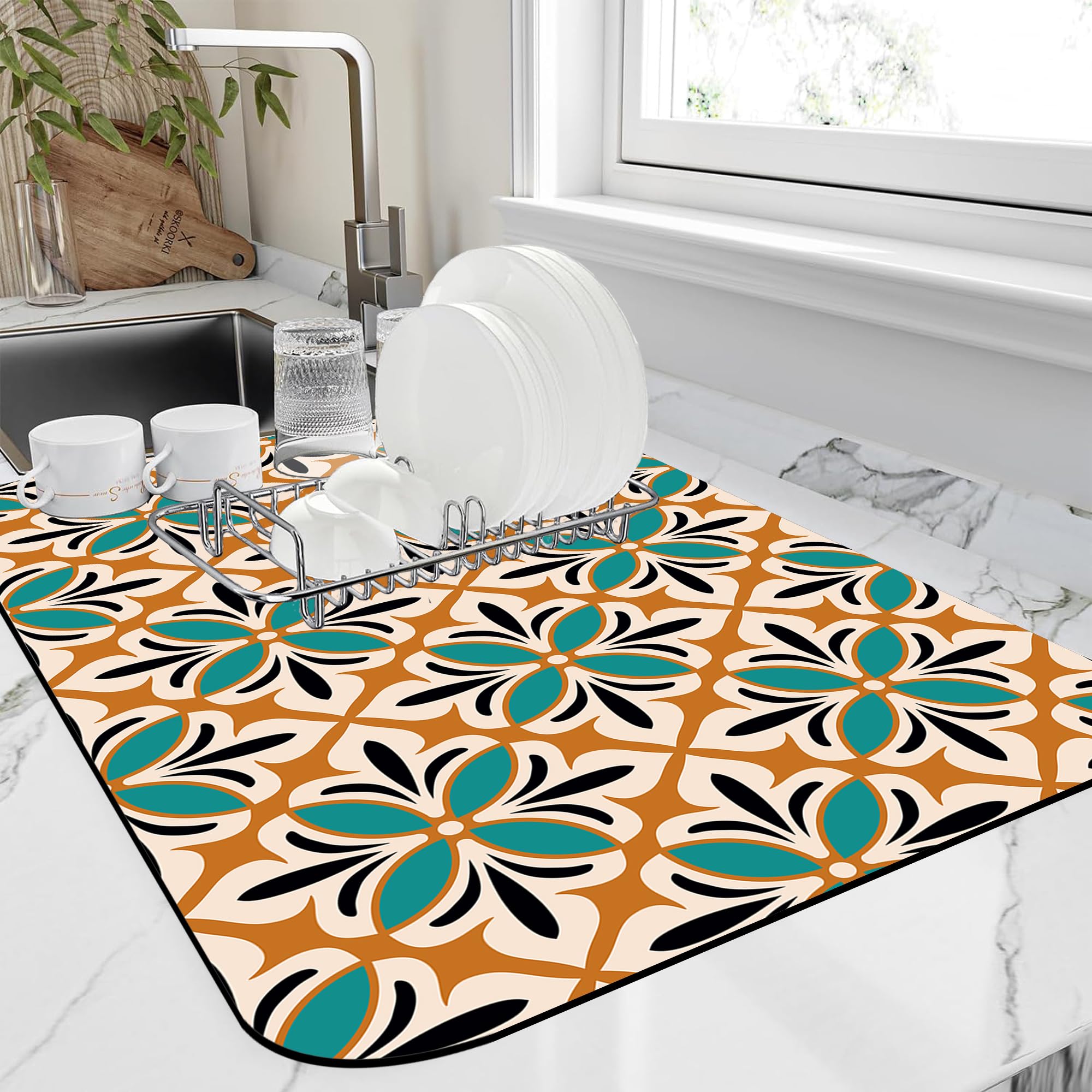 Dish Drying Mat Abstract Floral Kitchen Mat 16"x24" Bsorbent Coffee Maker Mat for Dishes,Utensils Coffee Maker Pots and Pans Easy Clean Dish Slip