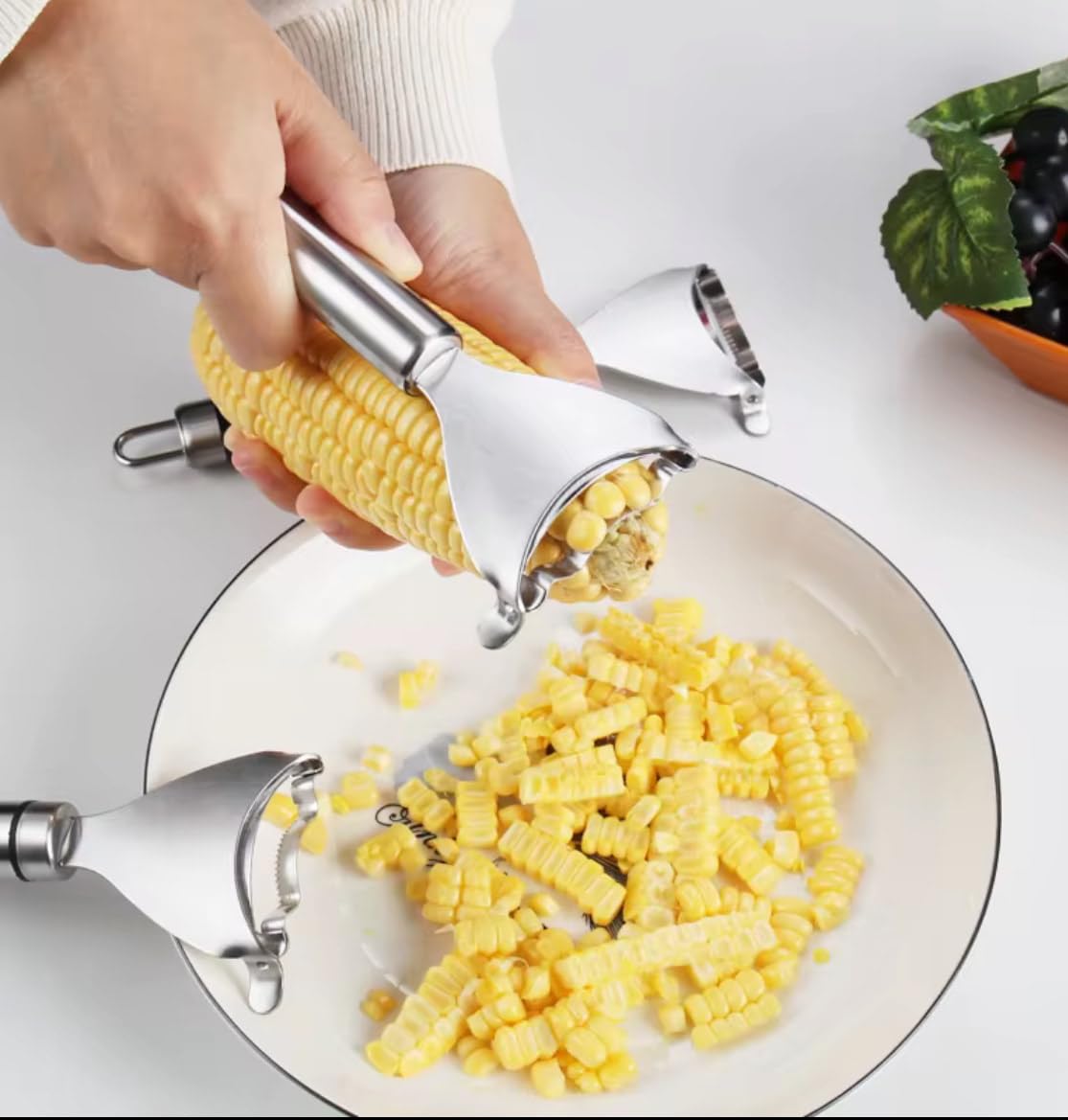 EFFICIENT DESIGN: Removes corn kernels quickly and easily with a stainless steel curved blade that perfectly follows the cob's contour VERSATILE USE: Works on both fresh and cooked corn, making it perfect for preparing corn for cooking, freezing, or immediate consumption COMFORTABLE GRIP: Ergonomica